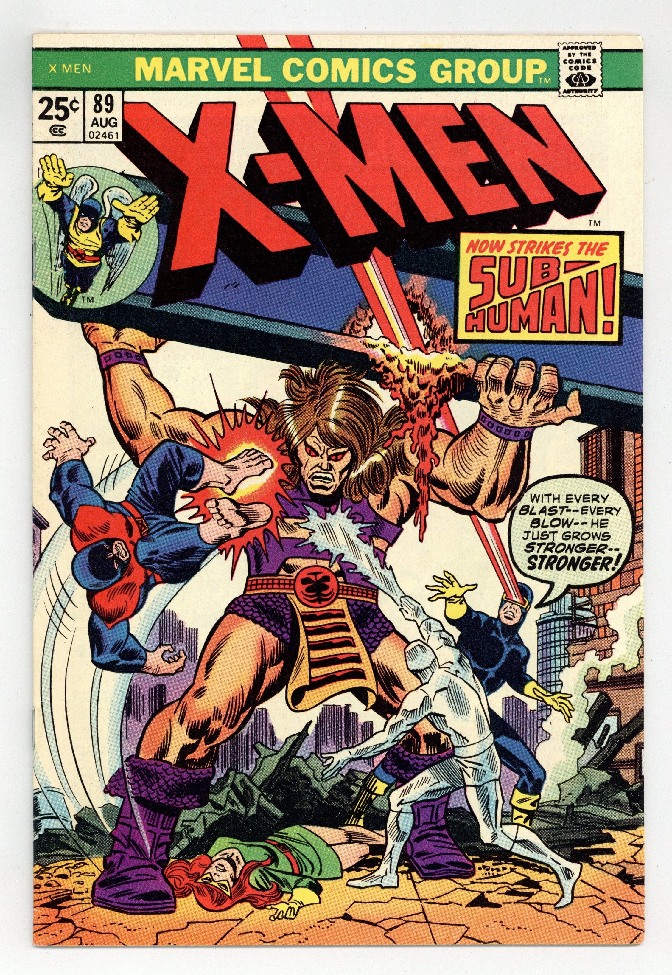 Cover inks by Frank Giacoia. Now Strikes the Sub-Human, script by Roy Thomas, pencils by Don Heck, inks by George Tuska; the X-Men battle the Grotesk, the last survivor of the Sub-Humans; reprinted from issue 41. For the Rest of Your Life!, script by Stan Lee, art by Steve Ditko; Jupiter's courts are thought soft, but their convicts are actually imprisoned for life within an illusion of freedom; reprinted from Amazing Adult Fantasy #11. 36 pgs. $0.25. Cover price $0.25.