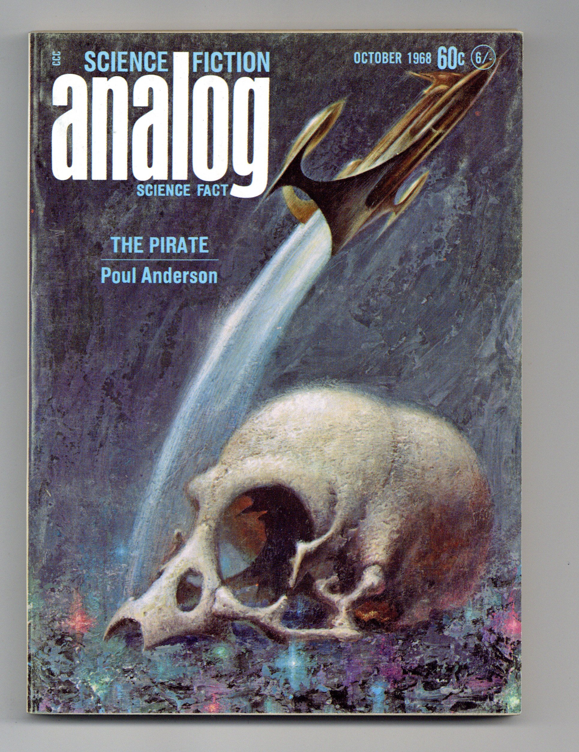 October 1968. Cover by Kelly Freas. Stories: "The Pirate" by Poul Anderson, "Mission of Ignoramce" by Christopher Anvil, "The Steiger Effect" by Betsy Curtis, "Underground" by Lawrence A. Perkins, and "The Tuvela" (conclusion) by James Schmitz. Science Fact features: "Taking the Lid Off" by William T. Powers and "Funny Coincidence" by John H. Pomeroy. Illustrations by John Schoenherr, Kelly Freas and Leo Summers. Softcover, 5.5-in. x 7.5-in.; 178 newsprint pages, B&W. Cover price $0.60.