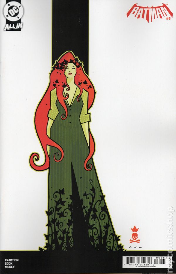 Limited 1 for 25 Retailer Incentive Variant Cover. (W) Matt Fraction (A) Jorge Jimenez (CA) David Aja FRACTION & JIMENEZ KICK OFF THEIR SECOND ART WITH A SHOCKING REINTRODUCTION OF THE JOKER AS YOU'VE NEVER SEEN HIM BEFORE! As Batman is beckoned to Arkham Towers by the mysterious man in Room Ten, nothing will prepare him for who he finds there. Some might call him the Caped Crusaders archnemesis. Others might call him Batmans best friend. Everyone calls him the Joker. 32 pages, full color, rated T+. Cover price $5.99.