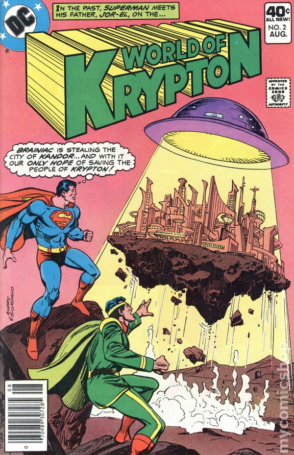 This Planet Is Doomed! - Written by Paul Kupperberg. Art by Alan Kupperberg (uncredited layouts), Howard Chaykin and Murphy Anderson. Cover by Ross Andru and Dick Giordano. In the past, Superman meets his father, Jor-El, on the world of Krypton! Are they the only hope to save the people of their planet? Find out in this exciting tale! Characters in this issue: Superman; Jor-El; Lara; Dr. Gaf; Nor-Kann; Kim-Da; Rol-Nac; Gra-Mo; Ni-Van; Dr. Ko; Jax-Ur. 32 pages, full color. Cover price $0.40.