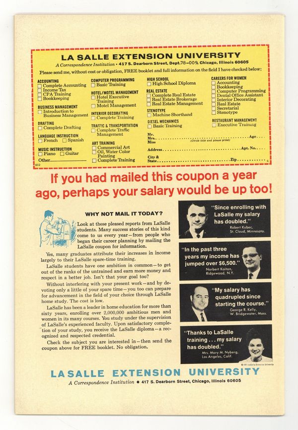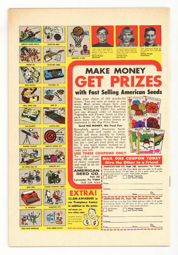 Ends Mar 30 7:12 PM CST Bid History 3 bids Current Bid $26 Your Secret Max Bid If you'd like to bid, please log in or register. "On Wings of Death!" Script by Stan Lee. Pencils by John Romita. Inks by Sal Buscema. Cover by John Romita. These are sad days for Peter Parker as his girlfriend, Gwen Stacy, has moved to London. So to get his mind off his troubles, Peter walks to Queens to visit his Aunt May. And thank goodness he does! Because May Parker has been taken hostage by the Beetle while grocery shopping! The web-slinger is horrified that his aunt is in danger! And he makes a beeline to the grocery store -- for a very personal fight against the belligerent Beetle! Retelling of Spider-Man's origin. Cameo appearances by Betty Brant and Anna Watson. (Notes: This issue features a full-page panel of Spider-Man encircled by eight of his greatest foes. This story was reprinted in Marvel Tales #75.) 36 pages. Cover price $0.15.