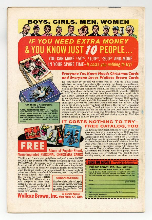 Starts Jan 3 Count Nefaria, the Plantman, the Scarecrow, the Porcupine, the Eel, and the Unicorn appear. Cover pencils by Werner Roth, inks by Dick Ayers. Divided--We Fall!, script by Roy Thomas, pencils by Werner Roth (as Jay Gavin), inks by Dick Ayers; Trying once again to take a vacation, the X-Men are individually drawn to Central Park where they encounter phantom versions of themselves; One by one, they fall to five super powered villains; The X-Men are brought to Count Nefaria's fortress and he tries to convince them to join his plot to steal Washington D.C. and hold it for ransom. 36 pgs. $0.12. Cover price $0.12.