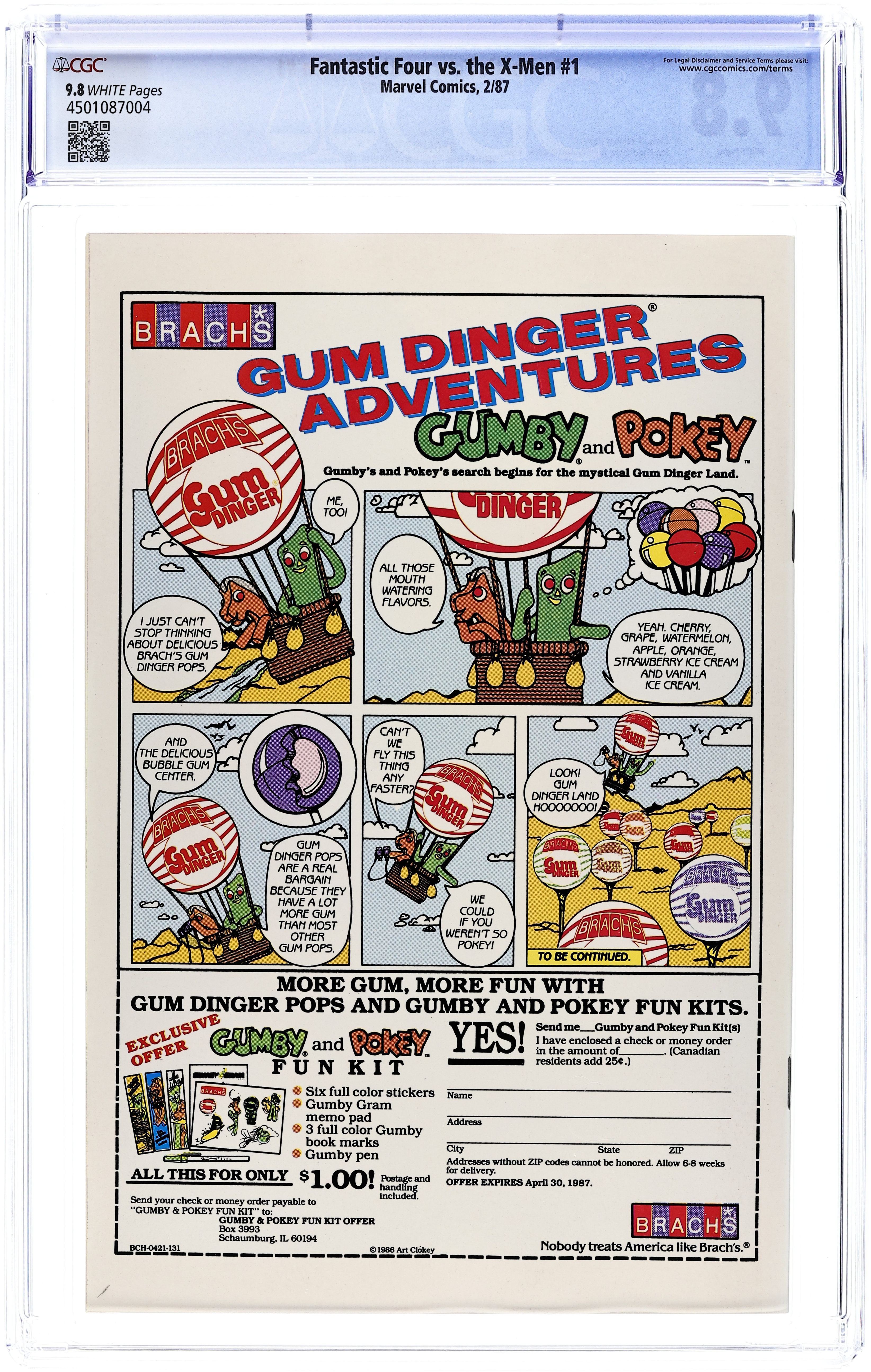 "By the Soul's Darkest Light!" Story by Chris Claremont. Art by Jon Bogdanove and Terry Austin. Overcome with guilt in seeing her friends in league with a villain like Doctor Doom, Kitty Pryde contemplates ending it so as to not cause anymore pain for her fellow X-Men. Can the youngest hero in the Marvel Universe, Franklin Richards, renew her waning courage? Meanwhile, each member of the Fantastic Four must do a little soul searching and rediscover why it is they are the World's Greatest Super-Hero Team. Cover price $1.50.