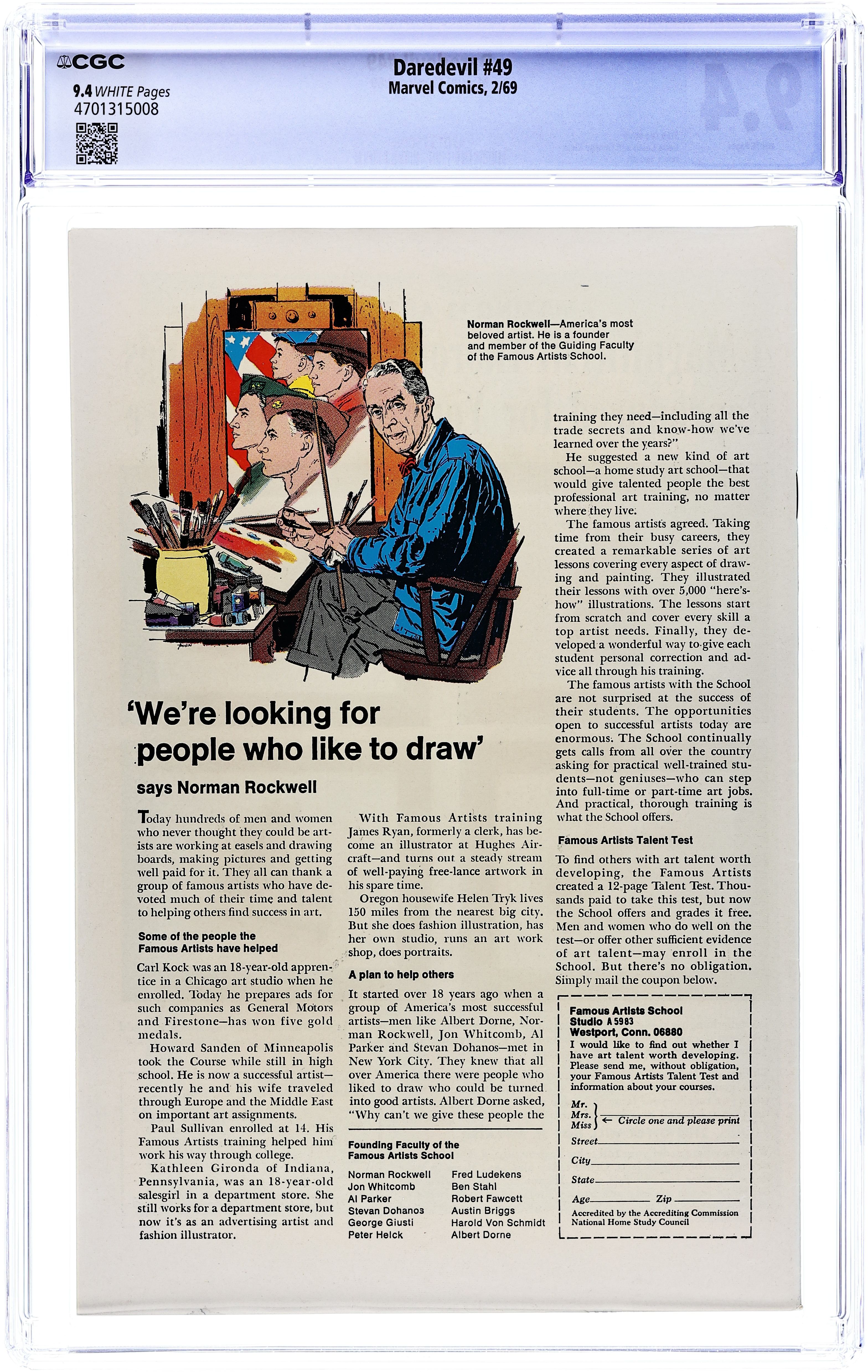 Cover pencils by Gene Colan, inks by George Klein. First appearance of Starr Saxon in Daredevil Drops Outtt, script by Stan Lee, pencils by Gene Colan, inks by George Klein; Biggie Benson hires mad scientist Starr Saxon to send a killer robot after Daredevil. 36 pgs. Cover price $0.12. Cover price $0.12.