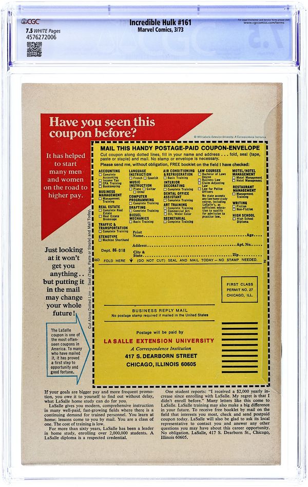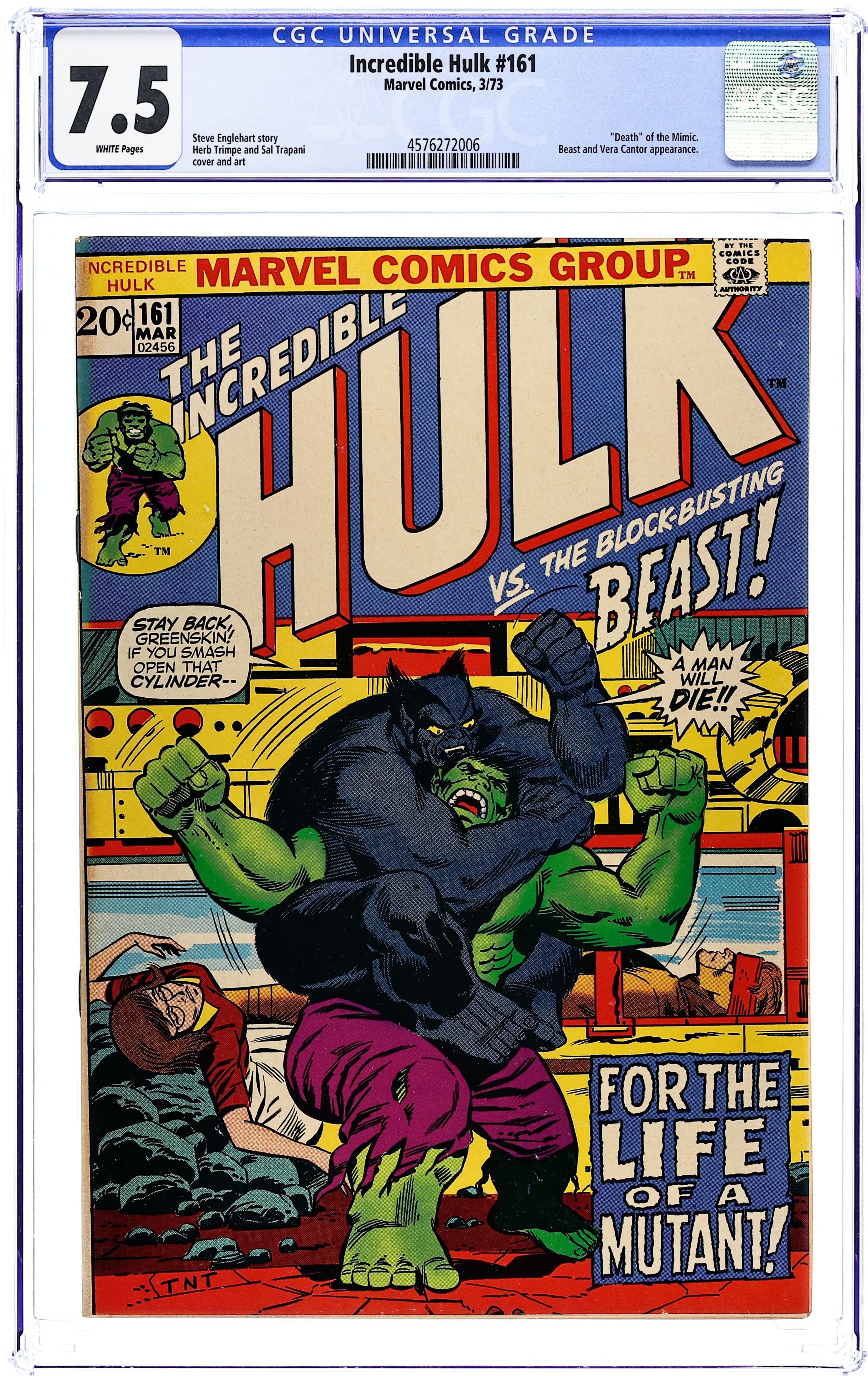 Tags: Marvel Legacy Numbering: Hulk (part 161), HulkIncredible Hulk (1962 Marvel 1st Series) 161 CGC 7.5