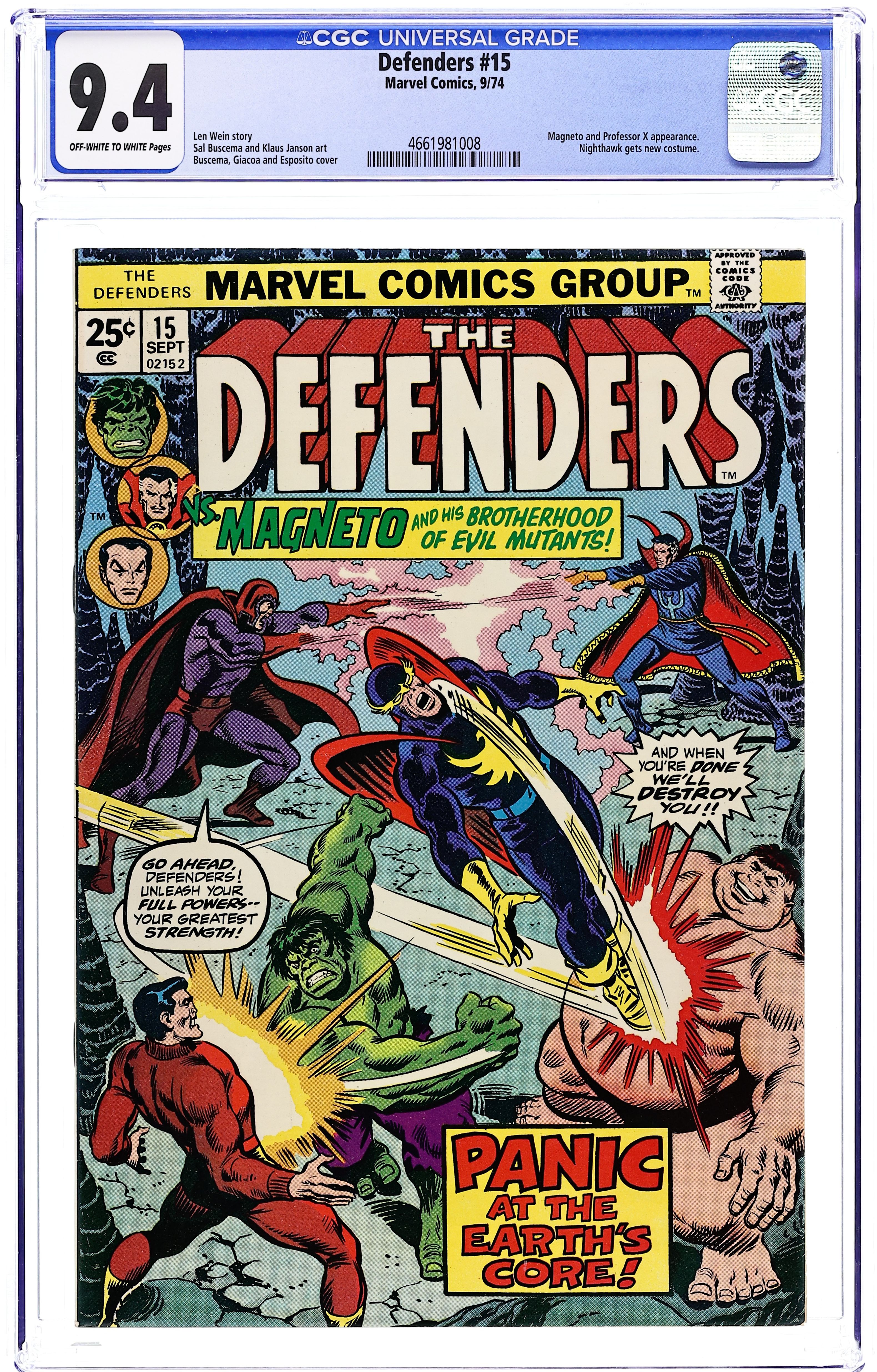 Defenders (1972 1st Series) 15 CGC 9.4
