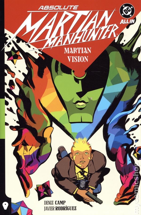 Volume 1 - 2nd and later printings. Collects Absolute Martian Manhunter (2025 DC) #1-6. Written by Deniz Camp. Art and cover by Javier Rodriguez. FBI agent John Jones has a problem. His brain has been infected by an alien consciousness calling itself the Martian, and its perception of reality is utterly incomprehensible to the human psyche. Now he must navigate this new status quo, all while balancing the deeply grounded and important duties of his day job! Reinvented from top to bottom by Deniz Camp (Ultimates, 20th Century Men) and Javier Rodríguez (Zatanna: Bring Down the House), Absolute Martian Manhunter takes Justice League's resident Martian on a mind-bending, psychedelic journey that transcends dimensions. Hardcover, 160 pages, full color. Teen+ Cover price $24.99.