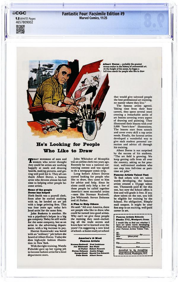 Fantastic Four (1961 1st Series) Facsimile Edition 9A CGC 9.8