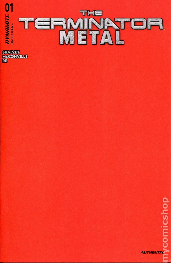 Black Bag Exclusive Authentix "Fierce Red" Blank Sketch Variant Cover. Written by Declan Shalvey and Rory McConville. Art by Lorenzo Re. KEEP YOUR FRIENDS CLOSE — AND YOUR ENEMIES CLOSER! In the post-apocalyptic future that follows Judgment Day, the shattered remnants of humanity must make use of every tool they can in their existential battle against the machines — and that includes the deadliest weapons that Skynet sends to annihilate them. For one member of the Resistance, this means trusting his life to a reprogrammed Terminator. Trapped behind enemy lines, the soldier and his repurposed engine of destruction must find a way to both survive and complete their mission — an undertaking with such a low probability of success that it could reboot the Terminator back to its default settings! Acclaimed Terminator and ThunderCats author DECLAN SHALVEY is joined by co-writer RORY MCCONVILLE and returning artist LORENZO RE for a brand-new chapter in his chilling saga of the War Against the Machines with The Terminator: Metal #1 — featuring brutally beautiful covers from SHALVEY, BOB LAYTON, SEBASTIAN PIRIZ, and IVAN TAO! 32 pages, full color, rated 13+.
