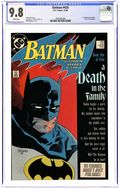 First printing. Direct Edition. Cover art by Mike Mignola. "A Death in the Family" part 2 of 4, script by Jim Starlin, pencils by Jim Aparo, inks by Mike DeCarlo; Jason meets his real mother, Sheila Haywood, but she turns out to be working for the Joker and allows her son to fall into his deadly hands inside of a warehouse; Joker beats Robin with a crowbar and leaves him for dead as a badly beaten Robin attempts to save his mom and himself from the dynamite left behind by the Joker as he leaves them both to a horrible fate; Batman watches in horror as the warehouse containing Jason and Sheila blows up, too late to stop the Joker. Infamous Phone Poll on death or life for Robin (Jason Todd). The Direct Sales copies of this comic, released first, contained a 1-800 phone number to either vote "for" or "against" the death of Jason Todd on the inside back cover. The newsstand copies, released 3 weeks later did not contain the 1-800 number. NOTE: Most issues from 397-432 were reprinted in 1989 and sold in multipacks. These 2nd and 3rd prints have back cover ads dated 1989. 52 Pages, Full Color. Cover price $1.50.