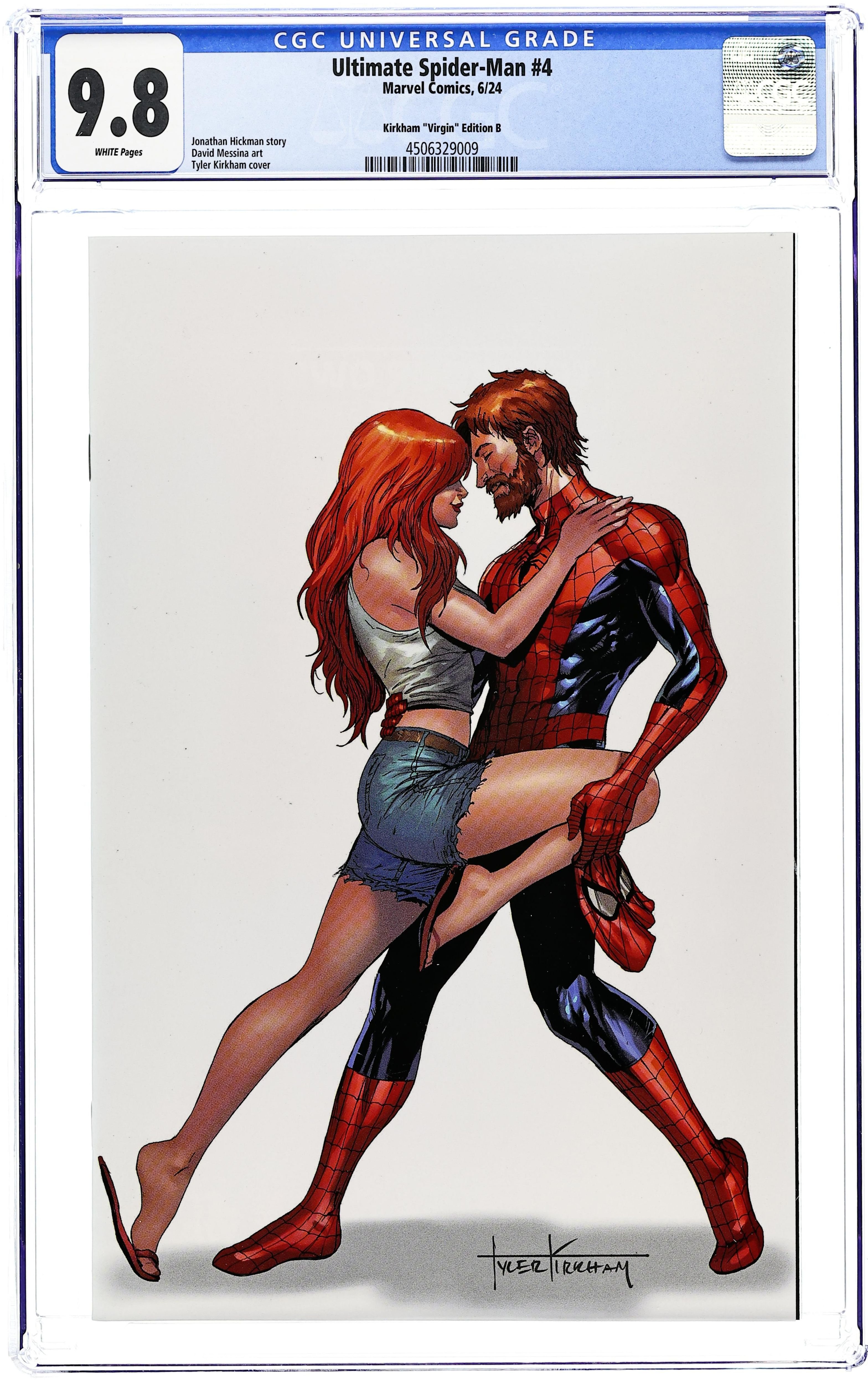 Comics Illuminati (Unknown Comics, Comic Traders, and Sleeping Giant) Exclusive "White" Virgin Cover by Tyler Kirkham. Written by Jonathan Hickman. Art by David Messina. WHO IS THE GREEN GOBLIN? Peter Parker's secret life starts fraying the edges of his personal life! J. Jonah Jameson and Ben Parker's pursuit of truth - or, at least, the news - stirs unrest with the world at large… And now that Spider-Man may not have to operate alone, the real work of rebuilding this corrupt world can begin! 32 pages, full color. Rated T