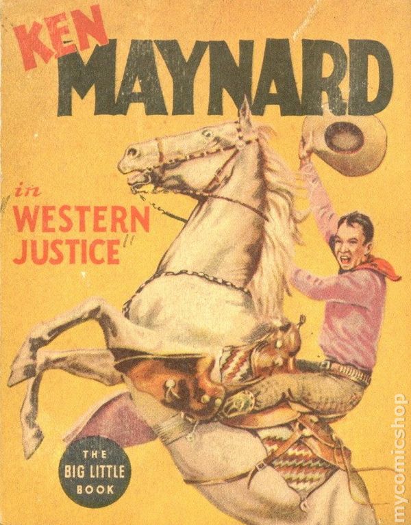 Ken Maynard in Western Justice (1938 Whitman BLB) #1430 Irwin Myers art. Hardcover book; 3.5-in. x 4.5-in.; black and white; 432 pages.