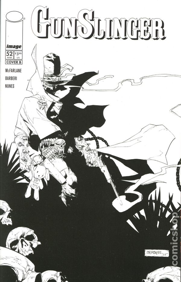 (W) Todd McFarlane (A) Carlo Barberi (CA) Bjorn Barends The Gunslinger has always tried to avoid complicated relationships. But now, with the return of someone from his past, he has to make a choice that might make his return to his own time impossible. 24 pages, full color, not rated. Cover price $3.99.
