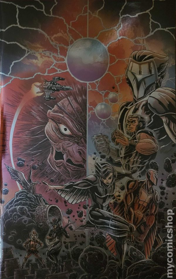 Limited 1 for 40 Retailer Incentive Variant Cover. Written by Ed Brisson. Art by George Kambadais. Cover by David Cousens. In the nearby galaxy of Limbo, the deadly mob boss Mon*Star has escaped from his confinement on Penal Planet 10 - and he's looking to take revenge on everyone who put him there! At the top of that list is Commander Stargazer, the grizzled space cop who personally took Mon*Star down the last time he went on a rampage. To recapture Mon*Star and his gang of super-criminal associates, Stargazer must put his retirement on hold and assemble a new team of his famed bionically enhanced law enforcers - the SilverHawks! Recruited from every corner of known space by the Federal Interplanetary Force, the SilverHawks were engineered to be the first line of defense against Limbo's ruthless agents of chaos. But during Mon*Star's long incarceration, the program went dormant, and its state-of-the-art tech has drifted towards obsolescence. Now, as they take on the galaxy's deadliest lawbreakers, Stargazer's new team of untested cyborgs - including Quicksilver, Bluegrass, Hotwing, Steelwill, Steelheart, and The Copper Kidd - will face the ultimate trial by fire! 32 pages, full color. Rated T Cover price $4.99.