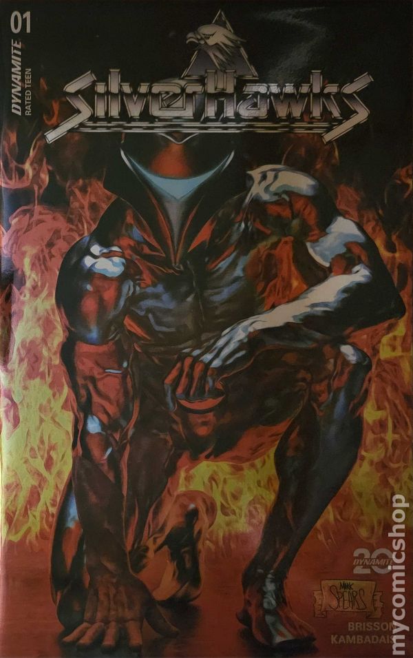 Limited 1 for 10 Retailer Incentive Variant Cover. Written by Ed Brisson. Art by George Kambadais. Cover by Mark Spears. In the nearby galaxy of Limbo, the deadly mob boss Mon*Star has escaped from his confinement on Penal Planet 10 - and he's looking to take revenge on everyone who put him there! At the top of that list is Commander Stargazer, the grizzled space cop who personally took Mon*Star down the last time he went on a rampage. To recapture Mon*Star and his gang of super-criminal associates, Stargazer must put his retirement on hold and assemble a new team of his famed bionically enhanced law enforcers - the SilverHawks! Recruited from every corner of known space by the Federal Interplanetary Force, the SilverHawks were engineered to be the first line of defense against Limbo's ruthless agents of chaos. But during Mon*Star's long incarceration, the program went dormant, and its state-of-the-art tech has drifted towards obsolescence. Now, as they take on the galaxy's deadliest lawbreakers, Stargazer's new team of untested cyborgs - including Quicksilver, Bluegrass, Hotwing, Steelwill, Steelheart, and The Copper Kidd - will face the ultimate trial by fire! 32 pages, full color. Rated T Cover price $4.99.