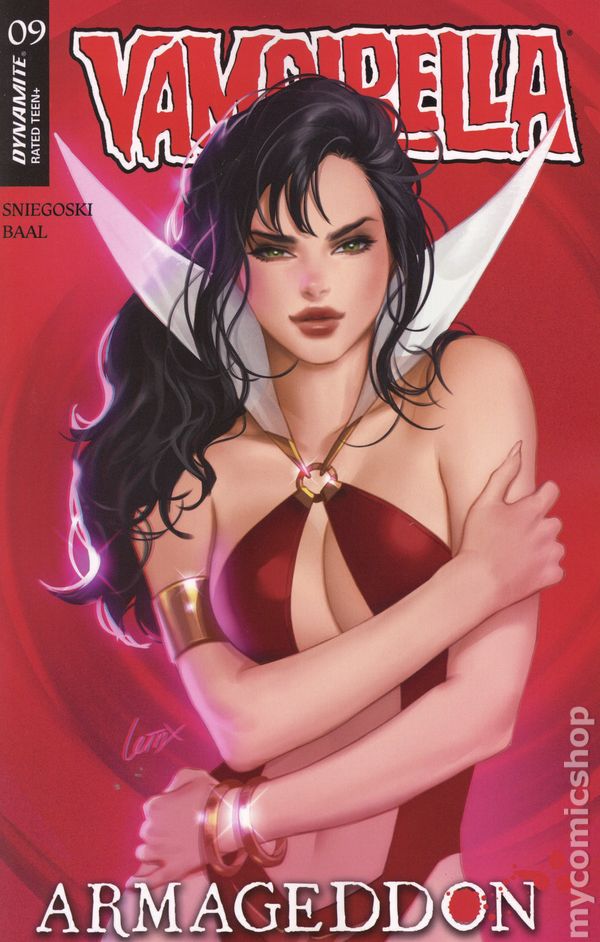 (W) Tom Sniegoski (A) Edu Menna (CA) Leirix Li DARK VAMPI RISING! In this issue: All Hell breaks loose — literally! Rising up from the deepest circles of the Inferno, Dark Vampirella has been loosed upon the world, and shes bringing fiery vengeance with her! Can the heroic Daughter of Drakulon stand up to her bigger, badder self and survive to drink blood another day? Find out in the brimstone-scented pages of Vampirella: Armageddon #9, from the diabolically creative team of TOM SNIEGOSKI and EDU MENNA — featuring sinfully sensuous covers from FRANCESCO MATTINA, LESLEY LEIRIX LI, JOSEPH MICHAEL LINSNER, and cosplay by LAUREN DELOREAN! 32 pages, rated T+, full color Cover price $4.99.