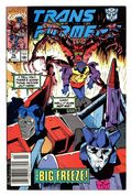 Starts Apr 4 Newsstand Edition. Cover pencils by Andrew Wildman, inks by Stephen Baskerville. "End of The Road!", script by Simon Furman, pencils by Andrew Wildman, inks by Stephen Baskerville; The Autobots have lost on Klo to the Decepticons; All hope seems to be lost until Optimus Prime is reborn by the Last Autobot using Hi-Q (with Prime's memories) as the template; The defeated Decepticons then leave Klo, but plot other plans against the Autobots. 36 pgs., full color. Cover price $1.00.