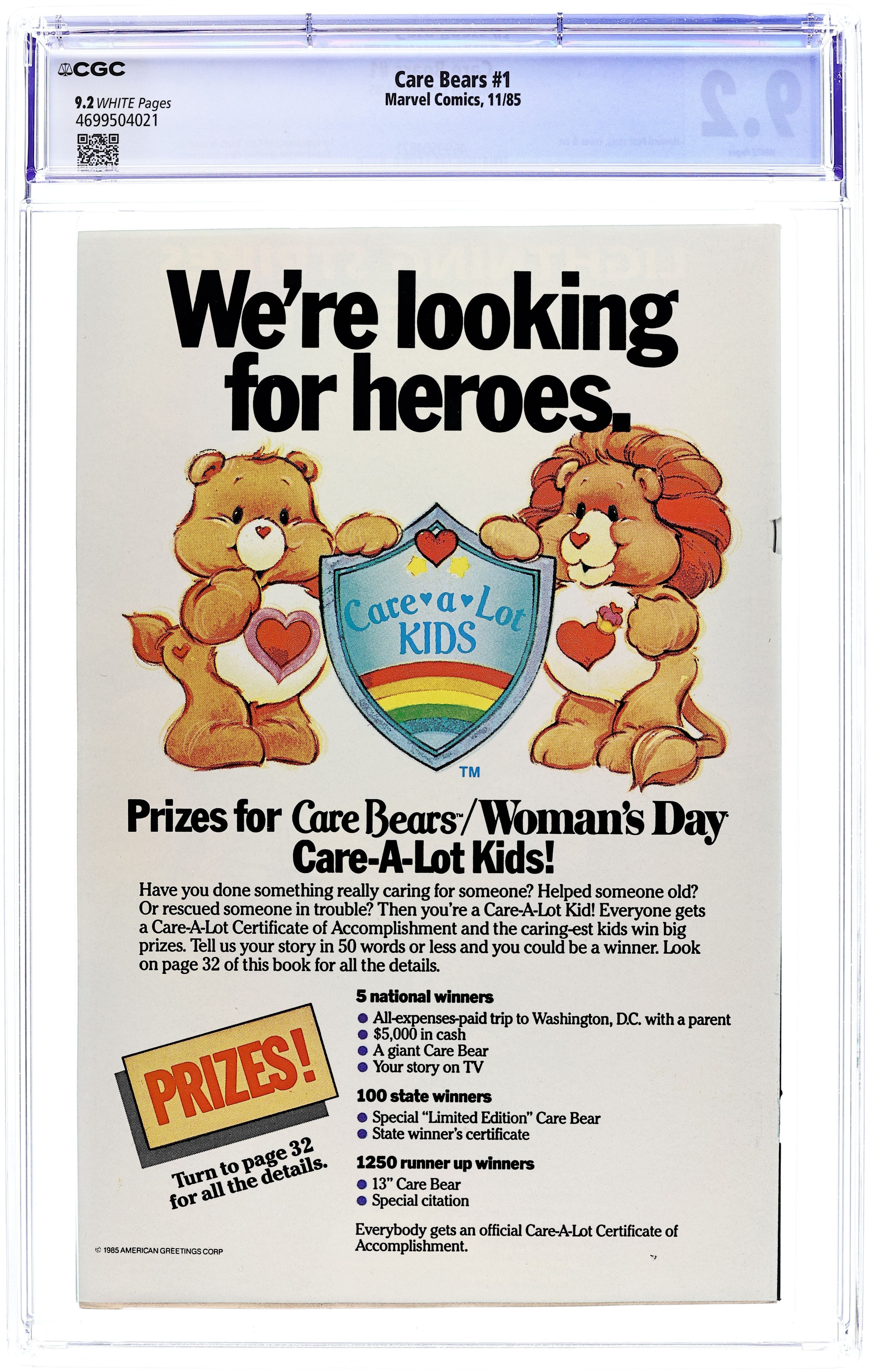 Published Nov 1985 by Marvel/Star Comics.Care Bears (1985 Marvel/Star Comics) 1D CGC 9.2