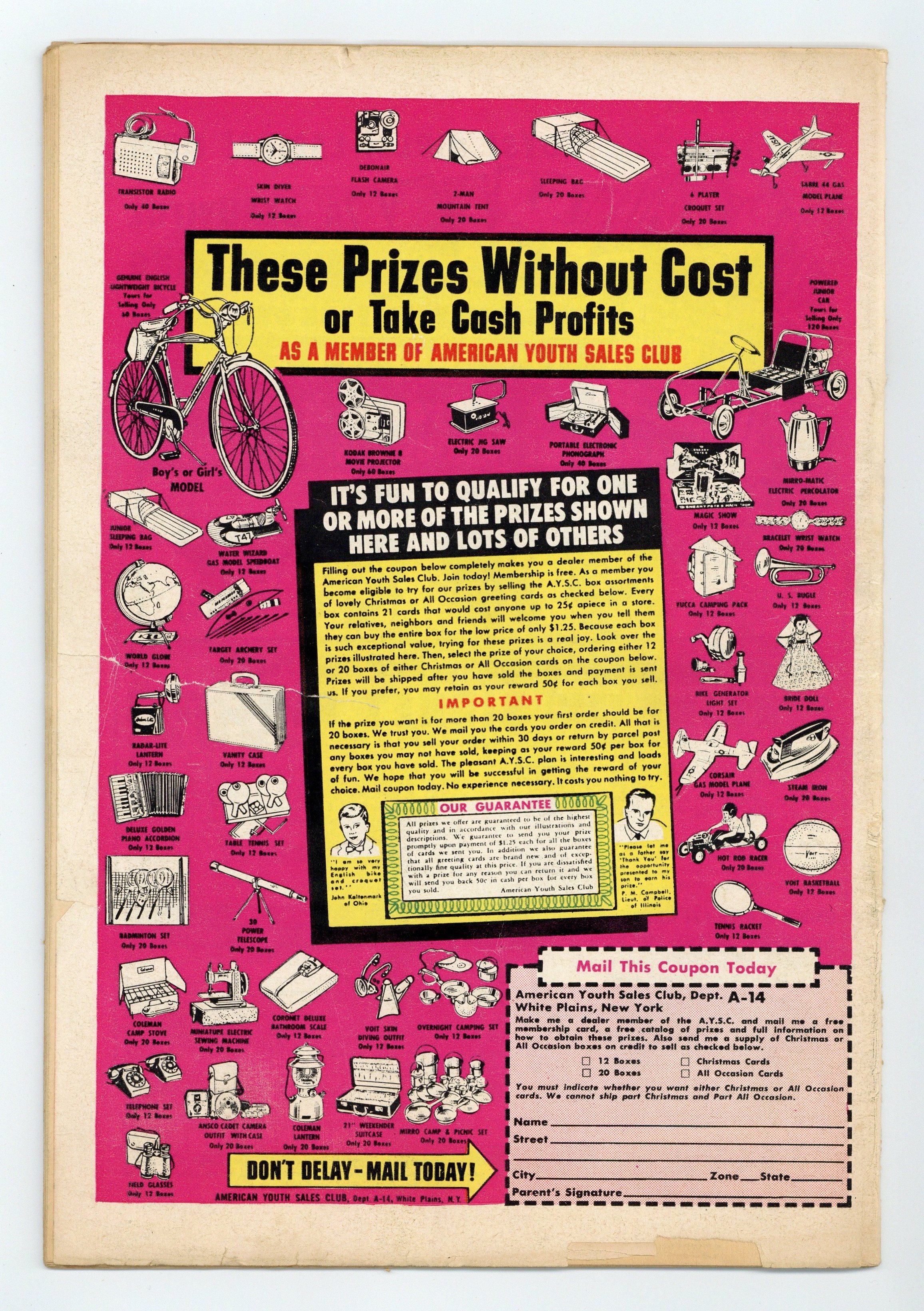 Starts Apr 4 Cover pencils by Curt Swan, inks by George Klein. "The Secret of the Stone-Age Superman," script by Otto Binder, art by Wayne Boring; When Perry White discovers a caveman skeleton dressed in a Superman costume, Superman travels into the past to investigate, but is trapped in prehistoric times because Earth's sun is red in that era. Cap's Hobby Hints activity page by Henry Boltinoff. Superboy ad. "The Anti-Supergirl Plot!", script by Leo Dorfman, art by Jim Mooney; A band with members that dress up as Green Lantern, Batman and Green Arrow are using their performances to commit robbery. 36 Pages, Full Color. $0.12 Cover price $0.12.