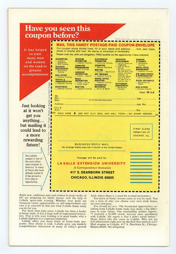Starts Apr 20 "Through a Mirror Darkly!" Written by Archie Goodwin. Art by Gene Colan and Tom Palmer. Cover by Neal Adams. Dracula takes a new bride. And, Taj will prove he's willing to do anything to stop the Count's evil rein of terror for ever. Even sacrifice his own life. 32 pages, FC. Cover price $0.20.