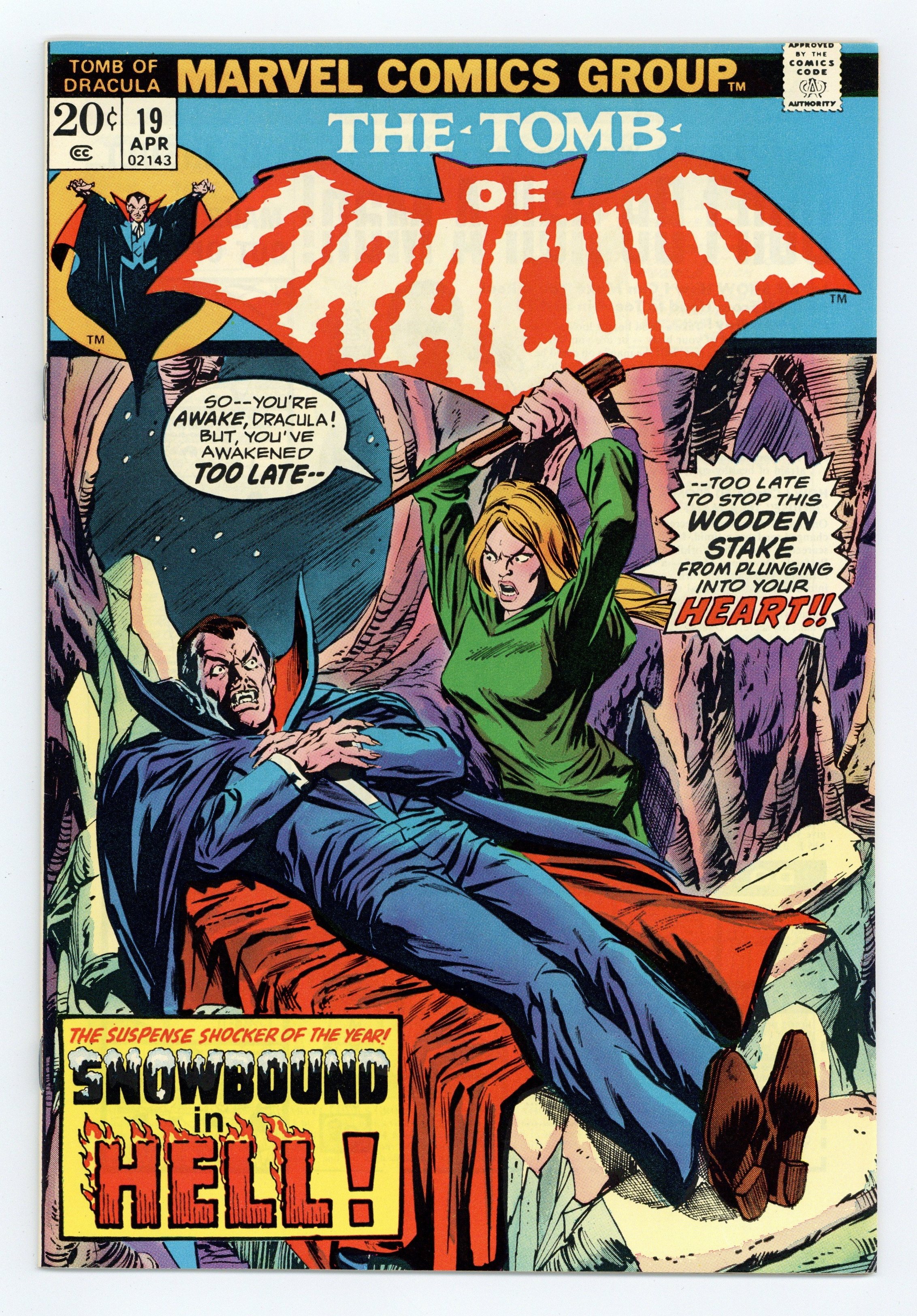 Starts Apr 20 "Who Stalks the Vampire?!" Written by Archie Goodwin. Art by Gene Colan and Tom Palmer. Cover by Gil Kane. Drake acquires new allies in his quest to destroy Dracula, but they will all soon learn that the Lord of vampires is no ordinary adversary. 32 pages, FC. NOTE: 1st appearance of Rachel Van Helsing. First letters column: letter to the editor from comics writer David Michelinie. Cover price $0.20.