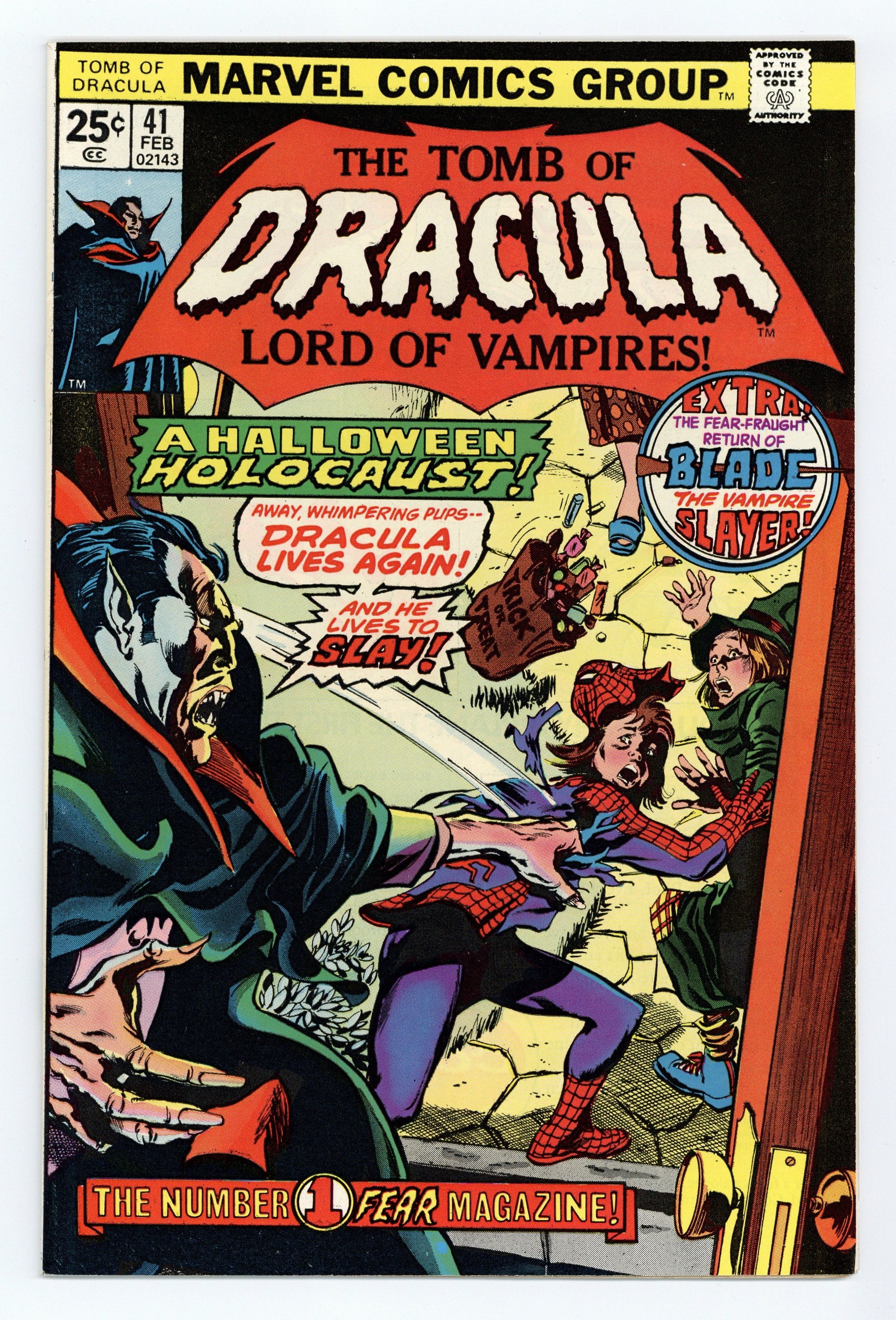 Starts Apr 20 "To Kill a Vampire!" Written by Marv Wolfman. Art by Gene Colan and Tom Palmer. The slayers have finally tracked Dracula back to his layer, but can even this fierce team of vampire hunters destroy the most powerful vampire to ever stalk the earth? Plus, the origin of Blade! 32 pages, FC. Cover price $0.20.