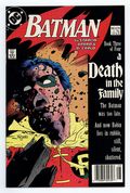 Ends Mar 30 7:32 PM CST Bid History 4 bids Current Bid $8 Your Secret Max Bid If you'd like to bid, please log in or register. First printing. Direct Edition. Cover art by Mike Mignola. "A Death in the Family" part 4 of 4, script by Jim Starlin, pencils by Jim Aparo, inks by Mike DeCarlo; Batman and Superman talk to CIA agent Ralph Bundy about the Joker's diplomatic status; The agent tries to get Batman to leave the Joker alone; Batman goes to the Joker's hotel room; The Joker confirms that he killed Jason; The Joker pulls a gun, but Batman is already gone; At the UN the Joker tries to poison the audience; Fortunately, Superman sucks up all the poison and flies out of the room to release it; The Joker activates bombs; Batman pursues him. NOTE: Most issues from 397-432 were reprinted in 1989 and sold in multipacks. These 2nd and 3rd prints have back cover ads dated 1989. 36 Pages, Full Color. Cover price $0.75.
