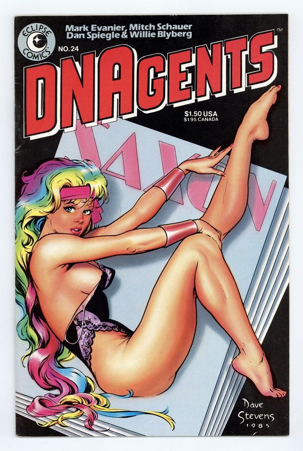 Starts Apr 20 Cover by Dave Stevens. While the DNAgents, with Crossfire's help, try to track down the Detonator, a magazine publisher makes Rainbow a tempting offer in an untitled story. Script by Mark Evanier and art by Mitch Schauer, Willie Blyberg & Dan Spiegle. Cover price $1.50.