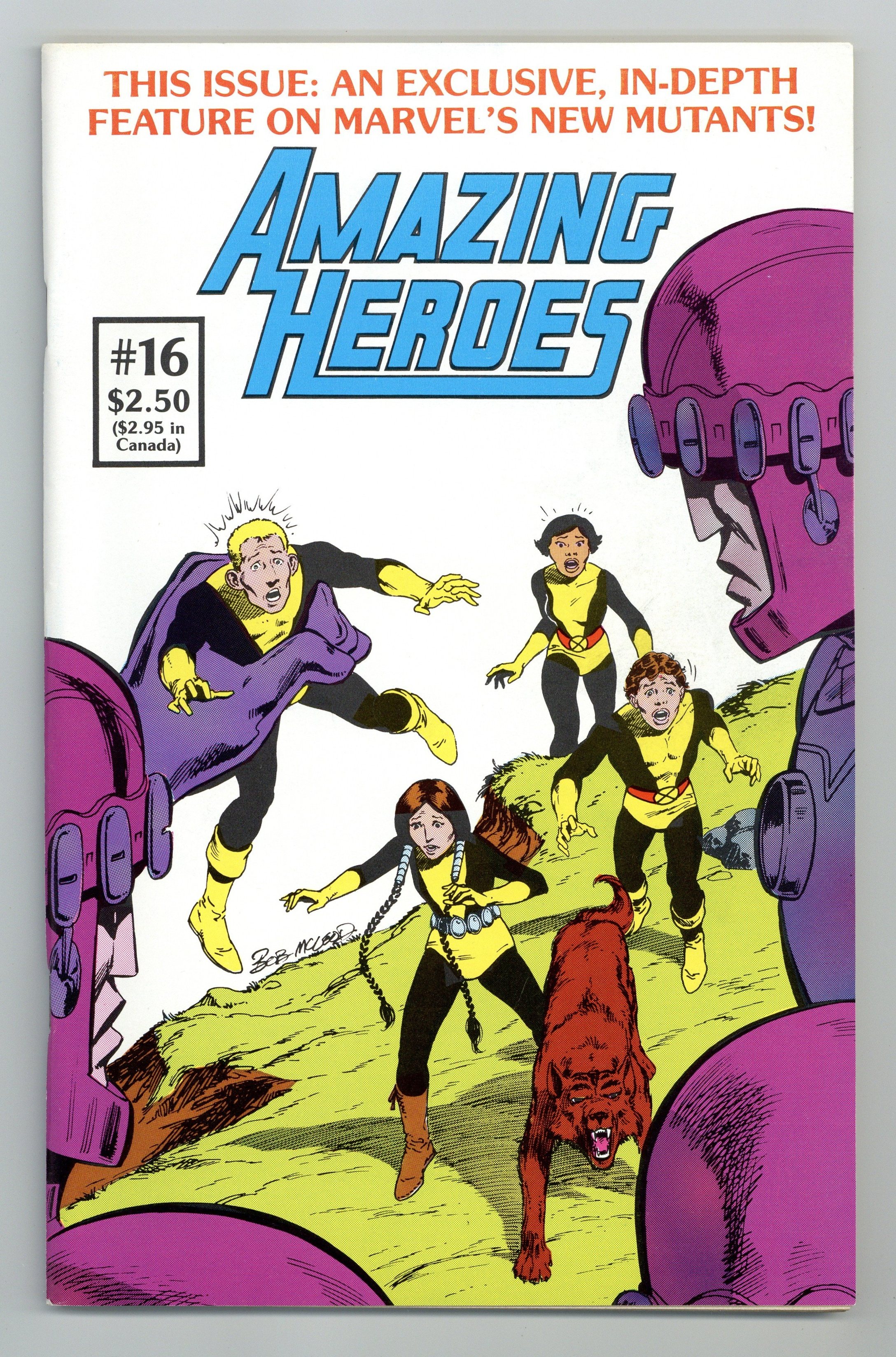 Starts Apr 27 In this issue: New Mutants in-depth preview (predates first appearance in Marvel Graphic Novel); Chris Claremont interview; Green Arrow - who is this masked archer really?; Namor Rex - a historical and sociological look at Prince Namor's undersea kingdom of Atlantis. Plus: Plus: Star Wars comic strip by Archie Goodwin and Al Williamson; Star Hawks comic strip by Archie Goodwin and Gil Kane; Amazing Heroes Newsline; Coming Distractions; Amazing Readers; Comics Review; Grading Comic Books (humor); A Guide to Marvel Reprints - Part 3; Silly Cover #79 by Sluggo Chadwick; Potpourri by Jim Korkis and Don Rosa. Cover by Bob McLeod. 98 pages, B&W. Cover price $1.95.