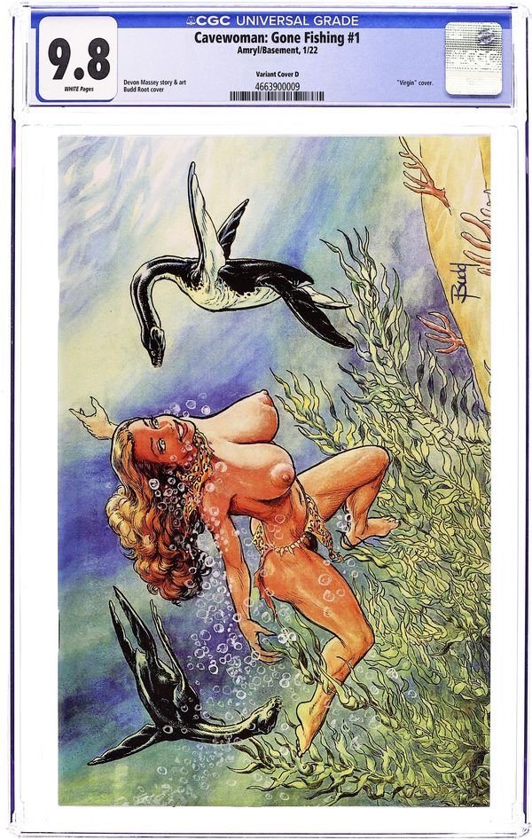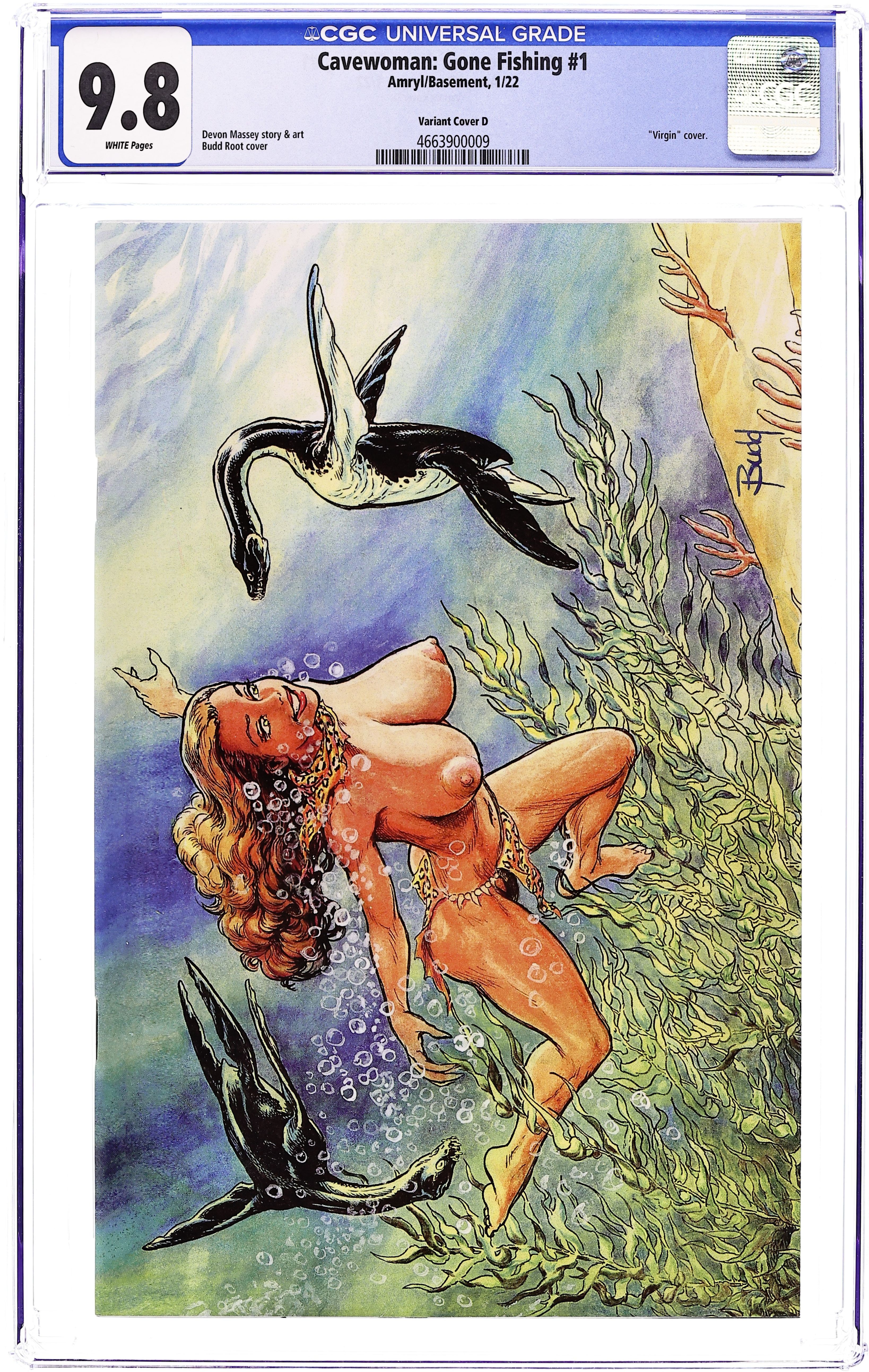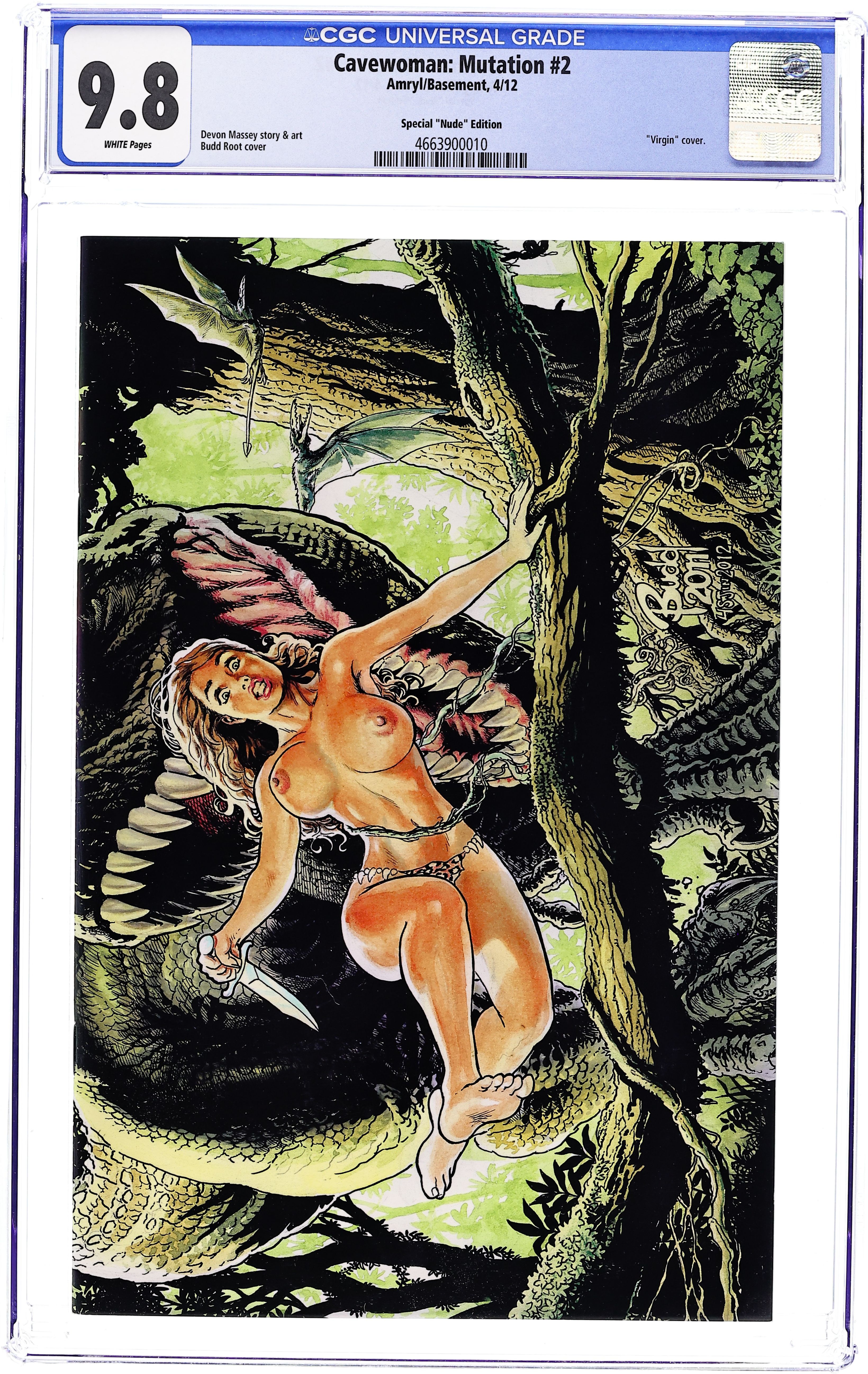 Budd Root Nude Special Edition. Limited to 750 copies. Includes Amryl Entertainment Certificate of Authenticity. (W/A/CA) Devon Massey Cavewoman: Mutation concludes with an all-out action issue! Bruce's depleted team has finally located Meriem and everybody begins to head home. Soon they discover new problems - getting out of the strange mutated river valley with even stranger creatures hot on their tails and the leader of the hunting party who wishes to get rid of Bruce and take Meriem for his own! And of course, the return of Budd Root as he presents another 4 preview pages for his new upcoming book!