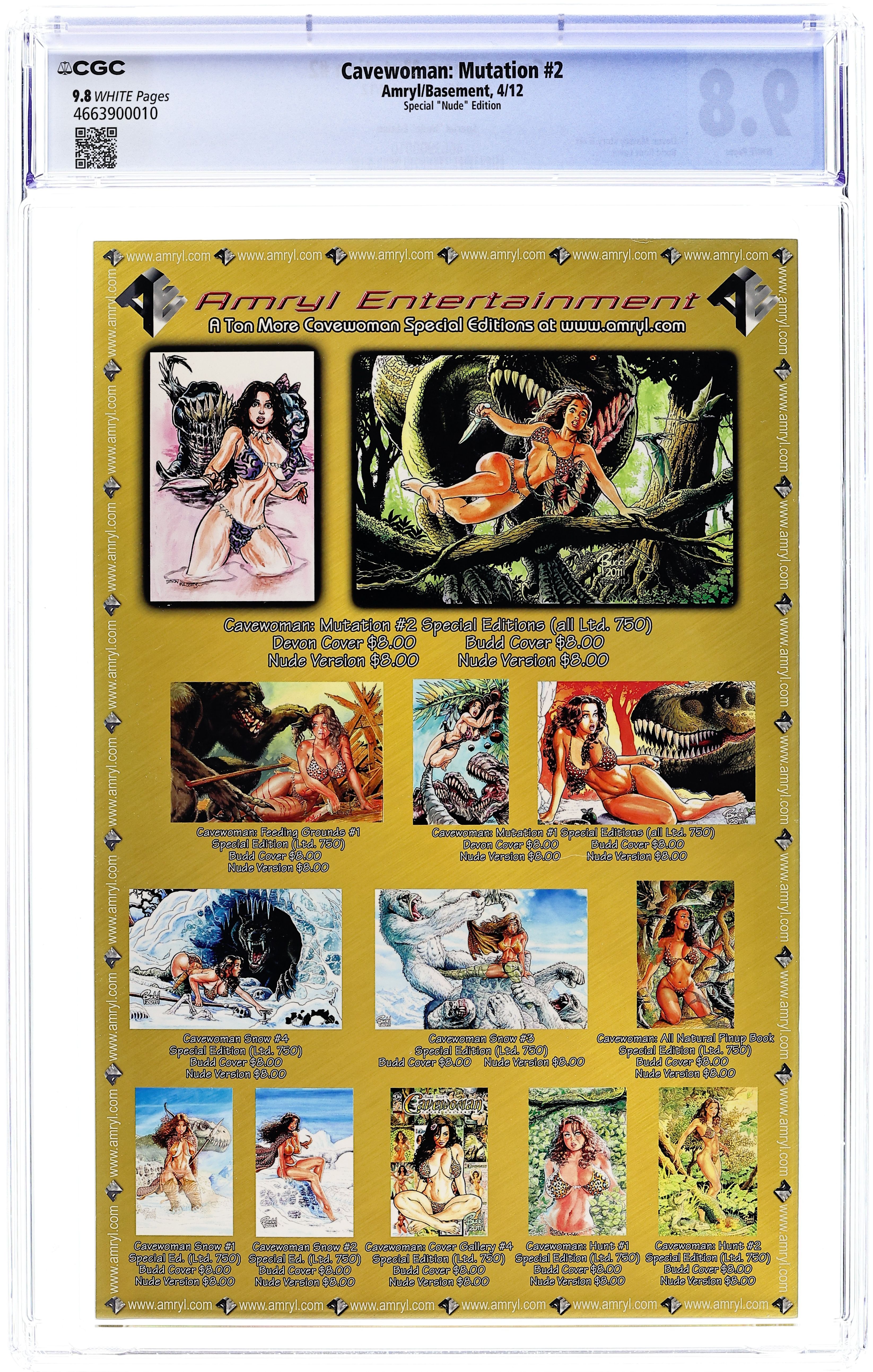 Devon Massey Nude Special Edition. Limited to 750 copies. Includes Amryl Entertainment Certificate of Authenticity. (W/A/CA) Devon Massey Devon is back with a new Cavewoman series! Doctor Lansing and his nerdy assistant Mona are researching Meriem's DNA to produce a serum that will hopefully give the citizens of Marshville a better chance to survive the dangers of a prehistoric world. Jealous of the attention that Meriem receives from an adoring Marshville and wanting her boyfriend Bruce all to herself, Mona takes a heavy dose of the prototype serum and seeks to discover if she is more than a match for Meriem. Look out! It's a rumble in the jungle and Marshville isn't big enough for both of them! Mature readers.