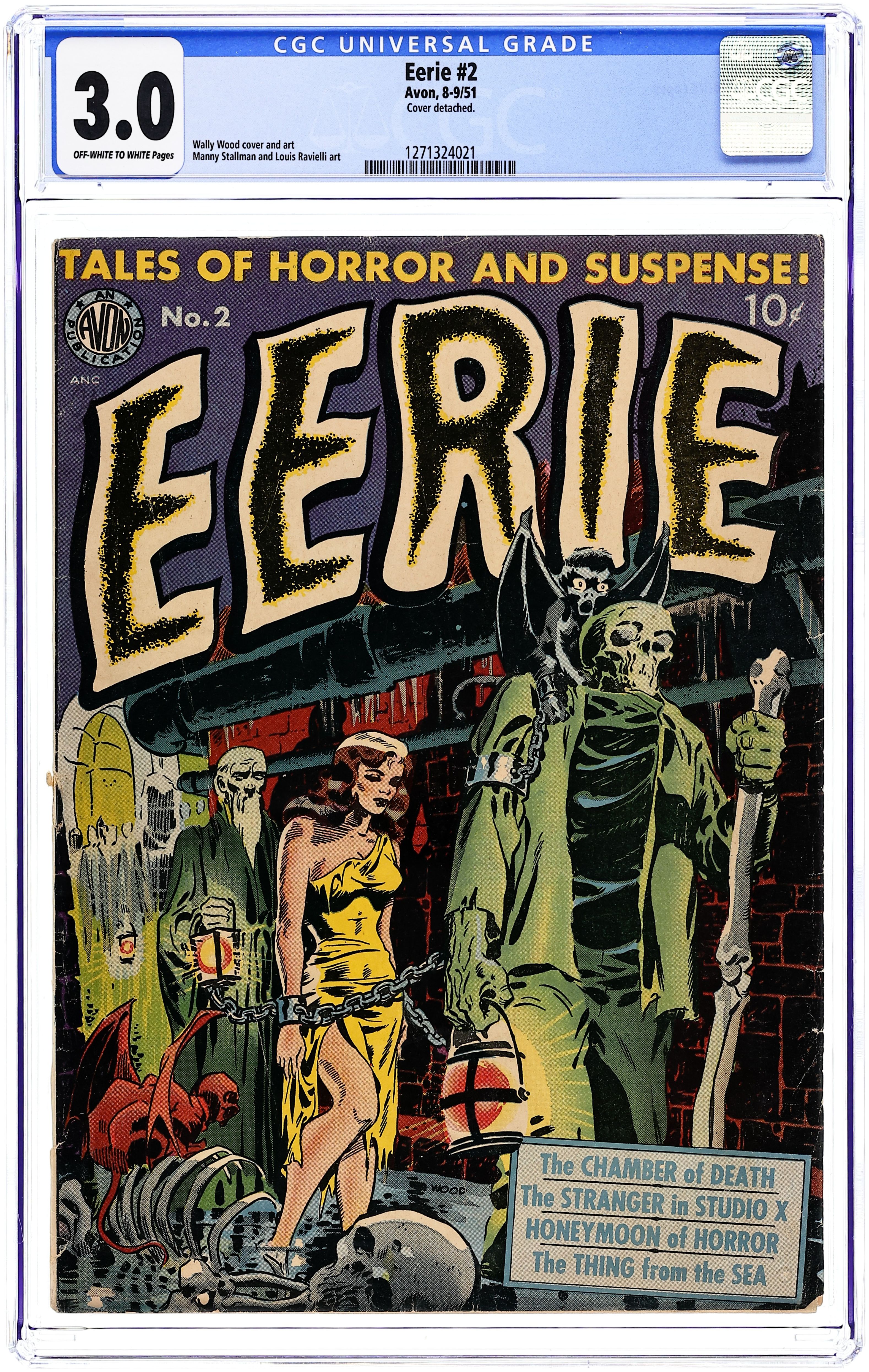 Satans Domain, The Lost Tomb of Nefertiri, Lay of the Sea, Midnight Muse, Merchants of Evil, plus an adaptation of Shakespeares The Tempest. Also, an article about the vampires of cinema. Stories and art by Ric Estrada, Gabe Levy, Pablo Marcos, Ralph Reese, John Albano, Jack Sparling and Martin Pasko. Part of the short-lived Atlas line from former Marvel publisher Martin Goodman.Magazine format. Black and white; 64 pages. Cover by Alberto Pujolar was later reused for Vampirella #111. Cover price $0.75. Cover price $0.75.