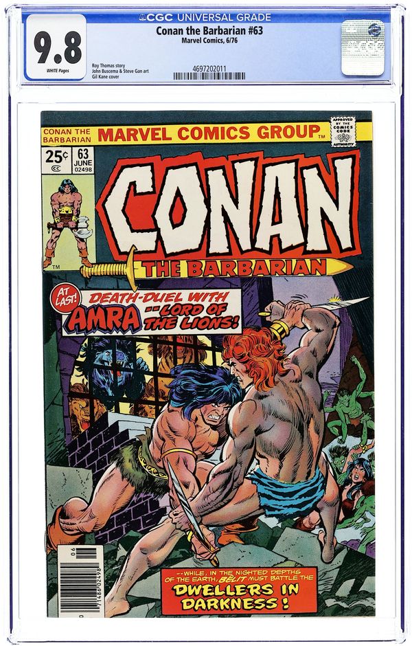 Cover pencils by Gil Kane, inks by Neal Adams. Wolf-Woman, script by Roy Thomas, pencils by John Buscema, inks by Dick Giordano; setting: Western border wastelands & Castle Ravengard; Conan & Lupalina Invade Castle Ravengard & rescue Stefanya; Conan wounds Torkal Moh (unknown if he dies); adapted from the novel "Kothar and the Conjurer's Curse" by Gardner F. Fox. Letters to the editor from Dean Mullaney (Eclipse Comics) and writer Frank Lovece. The letters page also contains Marvel Value Stamp Series A # 80 (the Ghost Rider). 36 pgs. Cover price $0.25. Cover price $0.25.