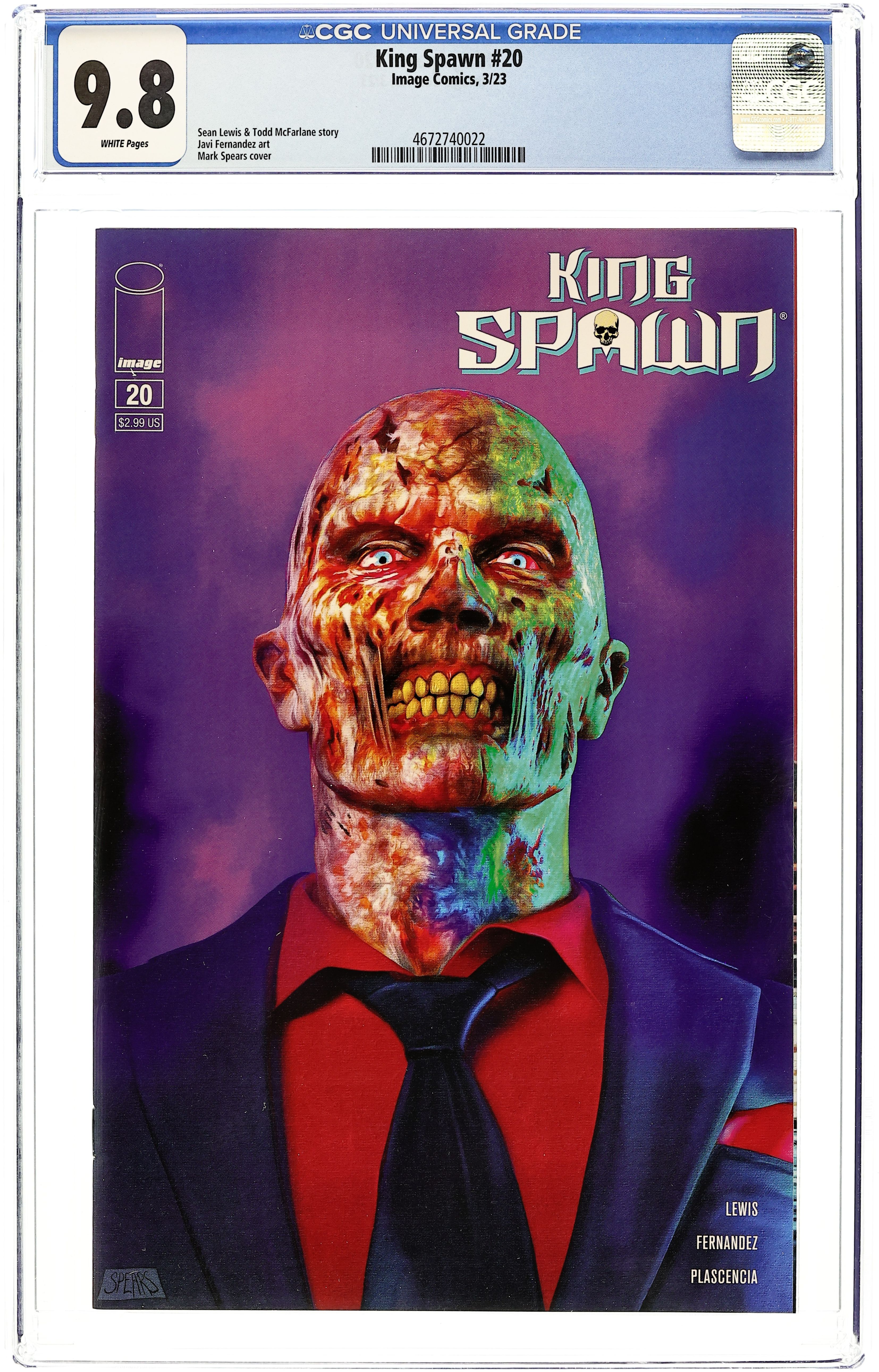 Limited 1 for 50 Retailer Incentive Variant Cover. (W) Rory McConville, Todd McFarlane (A) Stephen Segovia, Carlo Barberi (CA) Mark Spears Four years ago, Todd McFarlane launched the first large-scale expansion of the Spawn Universe with King Spawn #1. Now we are here to celebrate the success of the expanded Spawn's Universe with King Spawn #50. An oversized issue with a story that will cross over into all three of the #50's coming out in the coming months. (King Spawn, Gunslinger Spawn, The Scorched). An ancient force, almost as old as time itself, has returned, and Spawn is in its sights. The story, sent into two chapters per issue, will be penciled by two of the Spawn Universe's best, Stephen Segovia and Carlo Barberi. Cover price $4.99.