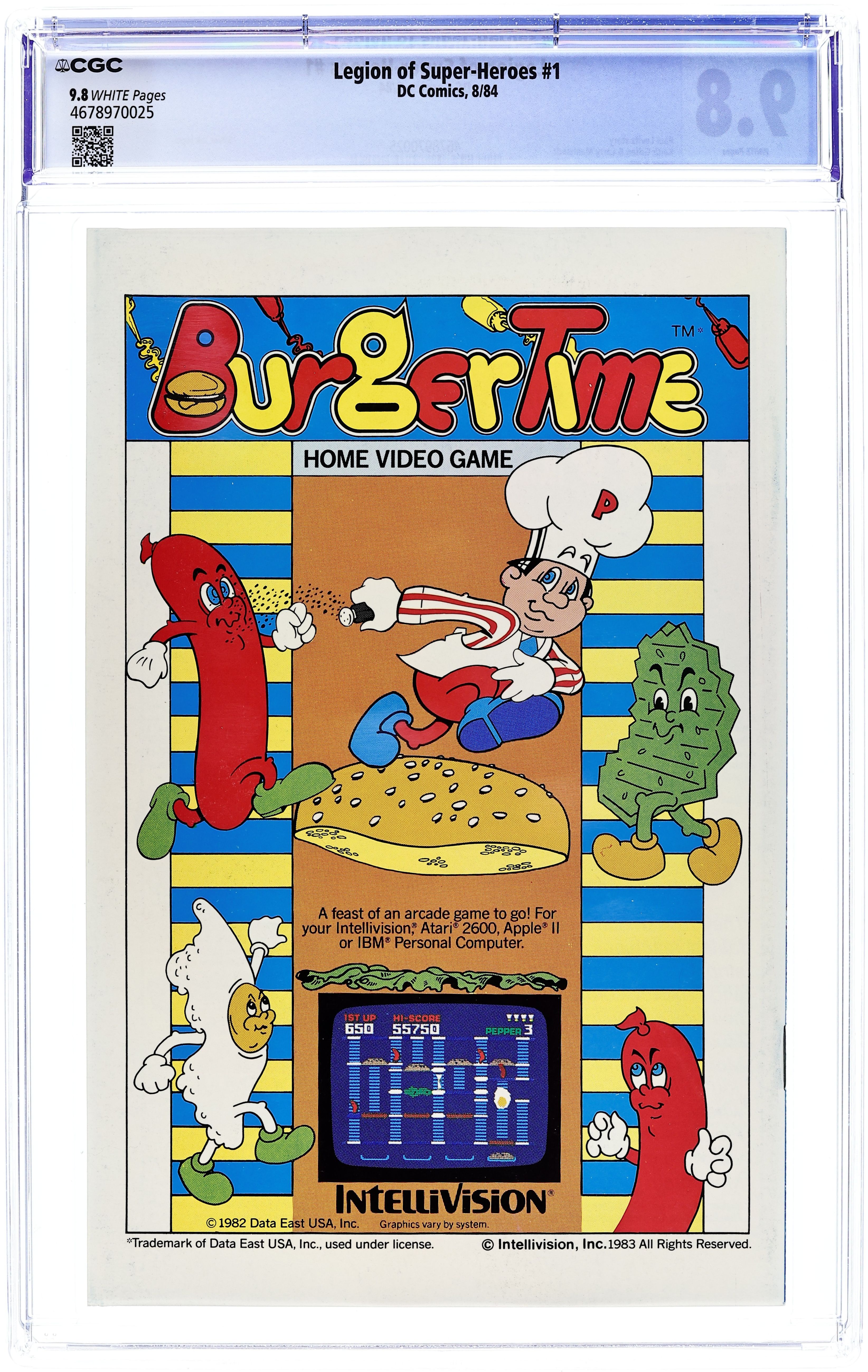 The conclusion of the 4-part Superboy crossover! Continued from Action Comics (1938 DC) #591. The story ends here...answering once and for all the question of who is "The Greatest Hero of Them All": Superboy! Characters: Legion of Super-Heroes [Blok; Brainiac 5; Chameleon Boy; Colossal Boy; Cosmic Boy; Dawnstar; Dream Girl; Element Lad; Invisible Kid [Jacques Foccart]; Lightning Lass; Magnetic Kid; Mon-El; Phantom Girl; Polar Boy; Quislet; Saturn Girl; Sensor Girl; Shadow Lass; Shrinking Violet; Sun Boy; Tellus; Timber Wolf; Ultra Boy; White Witch; Wildfire]; Night Girl; Superboy (Pocket Universe) (dies); Lana Lang (Pocket Universe); Pete Ross (Pocket Universe); Martha Kent (Pocket Universe); Jonathan Kent (Pocket Universe); Lightning Lad (cameo); Bouncing Boy (cameo); Duo Damsel (cameo); Star Boy (cameo); Matter-Eater Lad (cameo); Time Trapper. Written by Paul Levitz, with art by Greg LaRocque, Mike DeCarlo and Arne Starr. Painted cover by Bill Sienkiewicz. Deluxe format. Cover price $1.50.