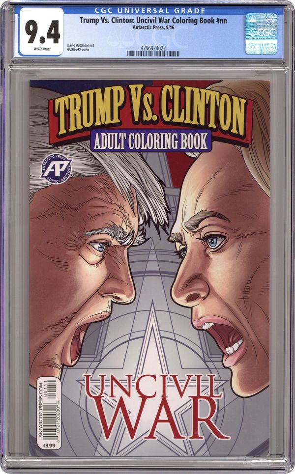 Published Sep 2016 by Antarctic Press.Trump vs Clinton Uncivil War Coloring Book (2016 Antarctic Press) 1A CGC 9.4