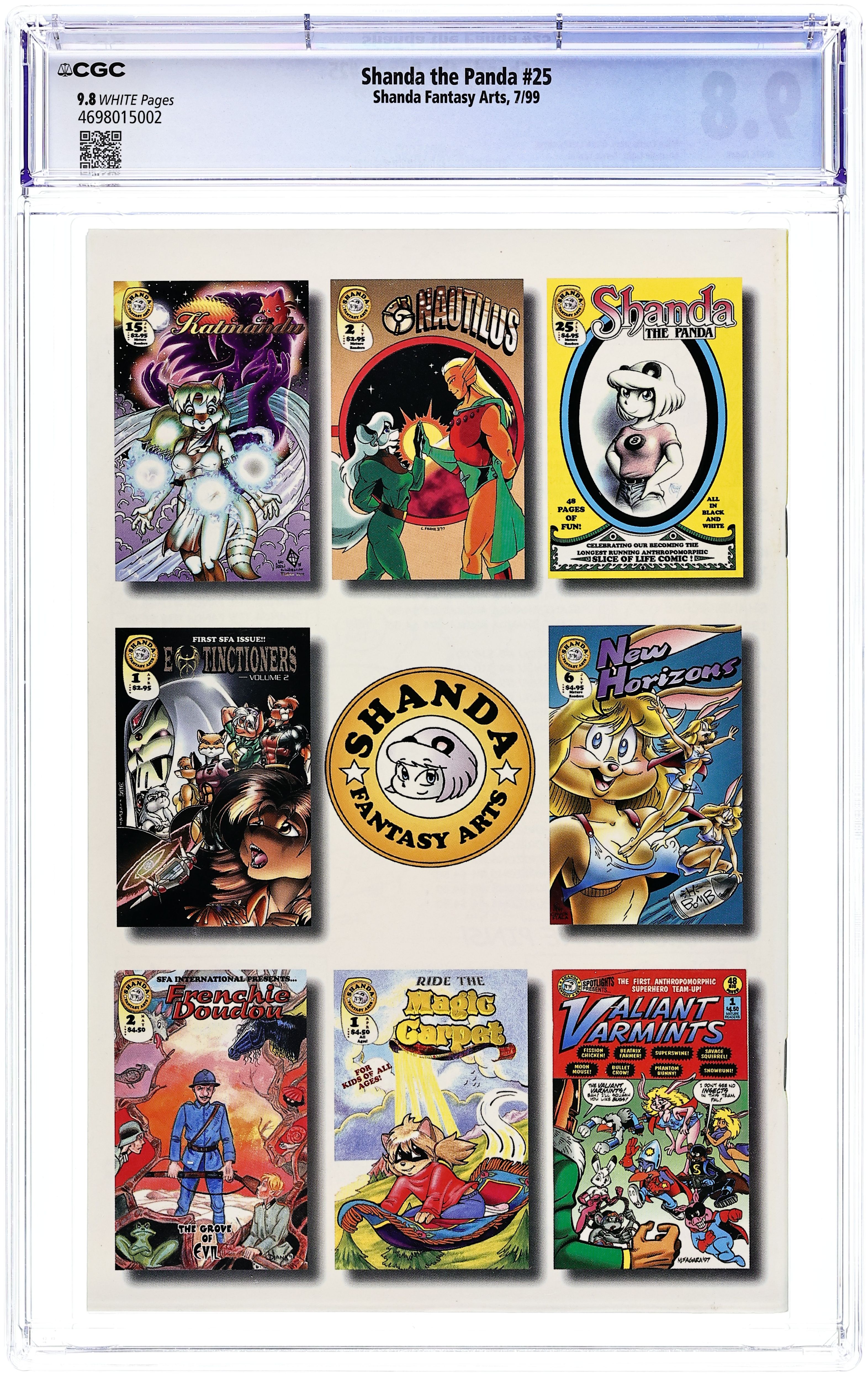Stories by Mike Curtis. Art by Michele Light, Christina Hanson, Terrie Smith, Mike Sagara and Carla Speed McNeil. Cover by Mark Crilley. Double-sized anniversary issue. The adventures of Shanda, an anthropomorphic panda girl with real-world problems. Shandas family gathers for her birthday; Shanda plays synthesizer for Aarons band. Also includes a reprint of the original Shanda story, from A Very MU Christmas. 48 pages, B&W. Mature Readers. Cover price $2.95.