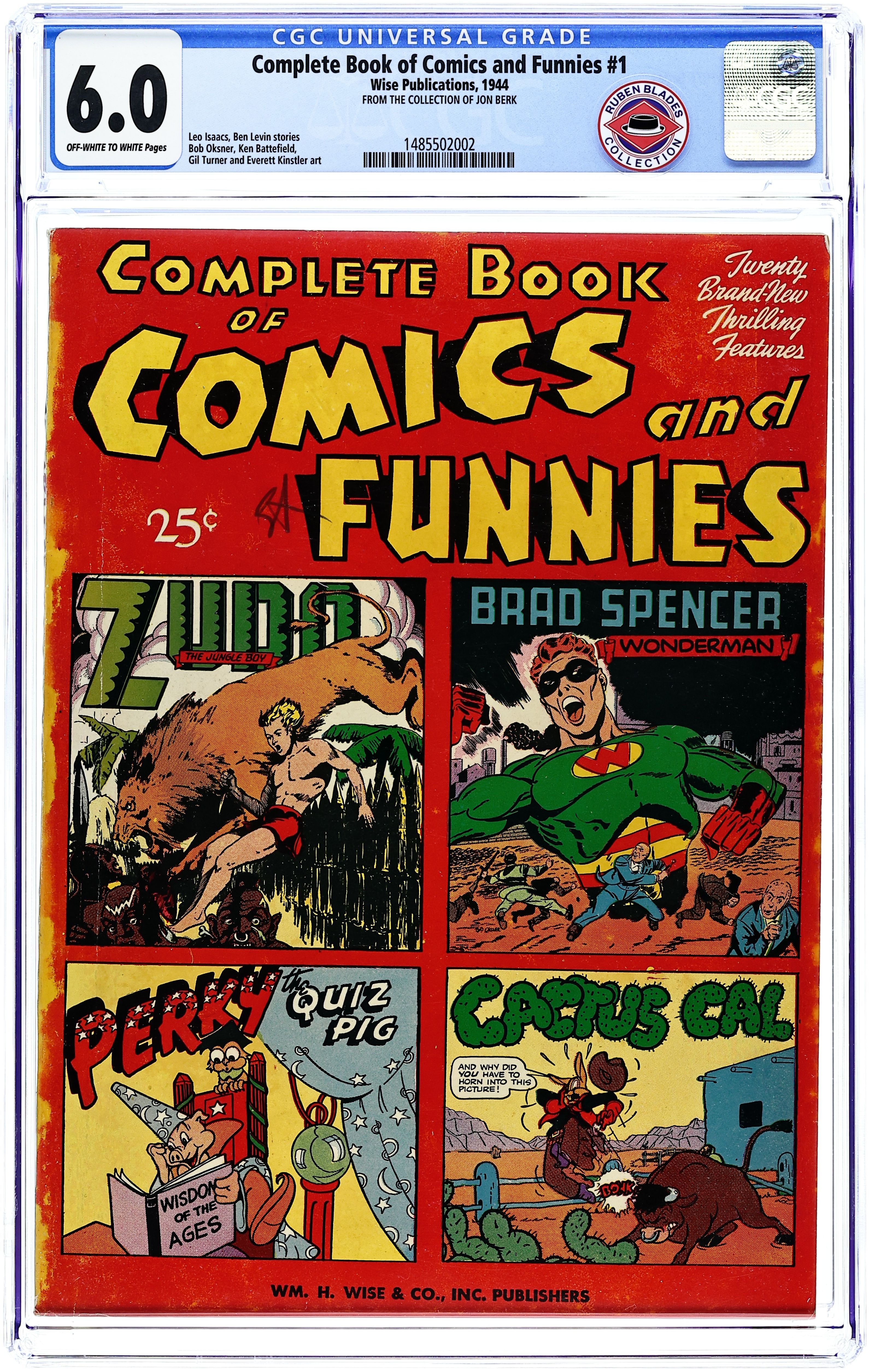 Cover by Alex Schomburg. Stories and art by Alex Schomburg, Ken Battefield, Ed Good, Leo Isaacs and Everett Raymond Kinstler. Adventure with jungle heroes, space heroes and superheroes, several of whom - Wonderman, Zudo, Magnet, and Silver Knight - debuted in Complete Book of Comics and Funnies (1944) #1 earlier in the year. Wonderman suspects the Immortal Emperor is hiding out on the Dark Planet Lilith, somewhere near the Moon. Captain Dick Devens, King of Futuria, battles Venusians in the far-off era of the late 20th century. The Magnet's Geo-Locator is put to its first test in tracking down the Crimson Conqueror. The Wonderman who appears in this issue has no connection to either the Wonder Man created by Will Eisner for Fox or the later Marvel character. Brad Spencer, Wonderman; Zudo the Jungle Boy; King of Futuria; The Magnet; The Silver Knight. 48 pages, Full Color. Cover price $0.10.
