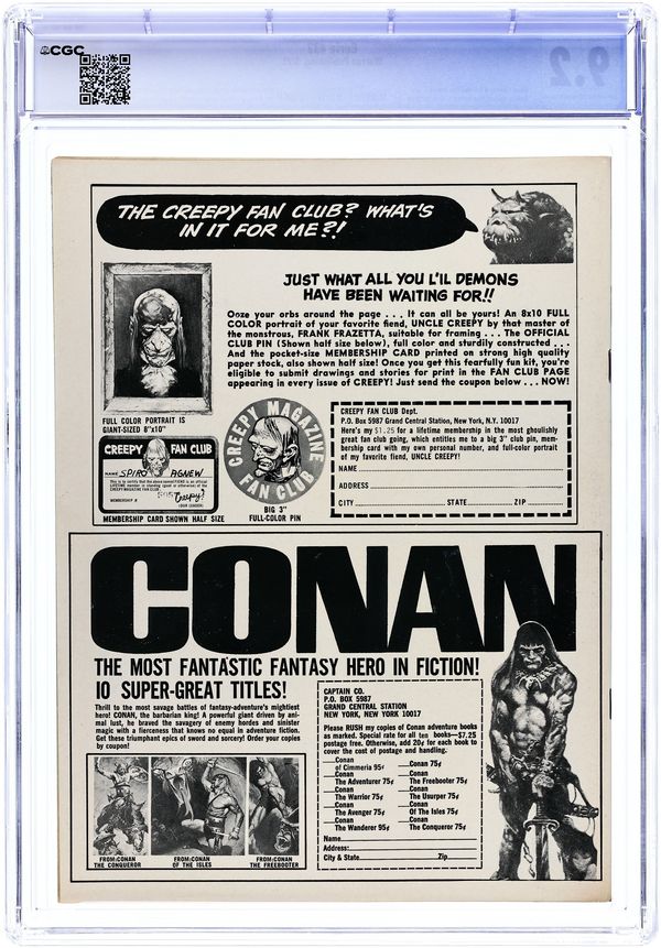 Stories in this issue include: Witches' Tide by Eugene Colan and Archie Goodwin; It that Lurks by Dan Adkins and Archie Goodwin; Hitchhike Horror by Hector Castellon and Archie Goodwin; The Defense Rests by Johnny Craig; Fly by Steve Ditko and Archie Goodwin; The Quest by Donald Norman and Archie Goodwin; and Cry Fear Cry Phantom by Jerry Grandenetti and Archie Goodwin. Cover art by Frank Frazetta. Cover price $0.35.