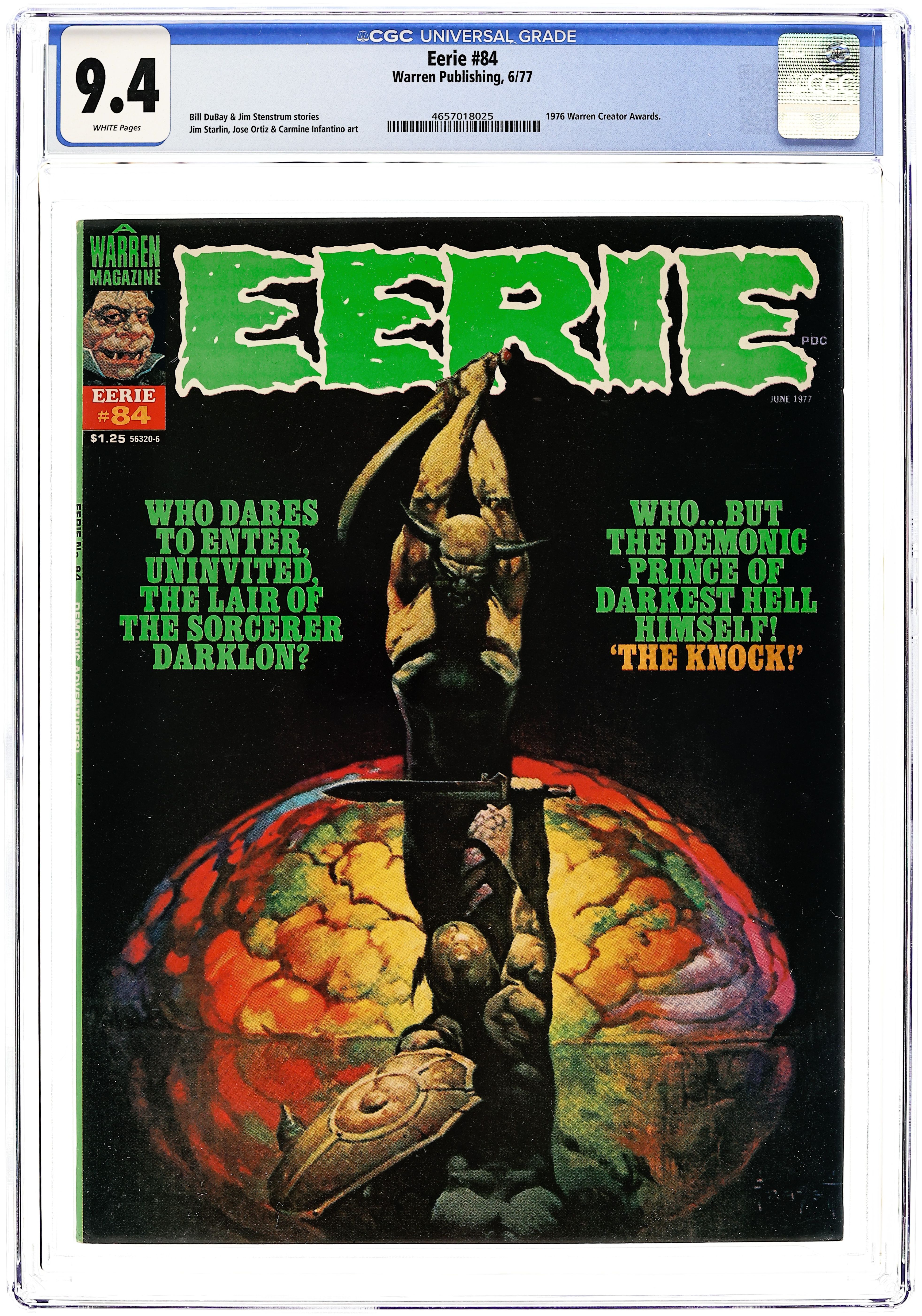 Stories in this issue include: The Demons of Jedediah Pan by Bill Dubay and Jose Ortiz; Father Creator by Bill DuBay and Paul Neary; Merlin: A Secret King by Budd Lewis and Gonzalo Mayo; and The Expedition by Budd Lewis and Leopold Sanchez. Includes the 1975 Warren Awards by Bill DuBay. Cover art by Ken Kelly. Cover price $1.00.