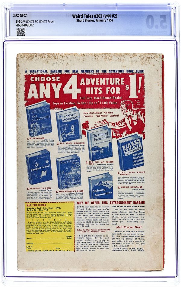 Published Jan 1948 by Weird Tales.$95.00- Paper: Off white to white