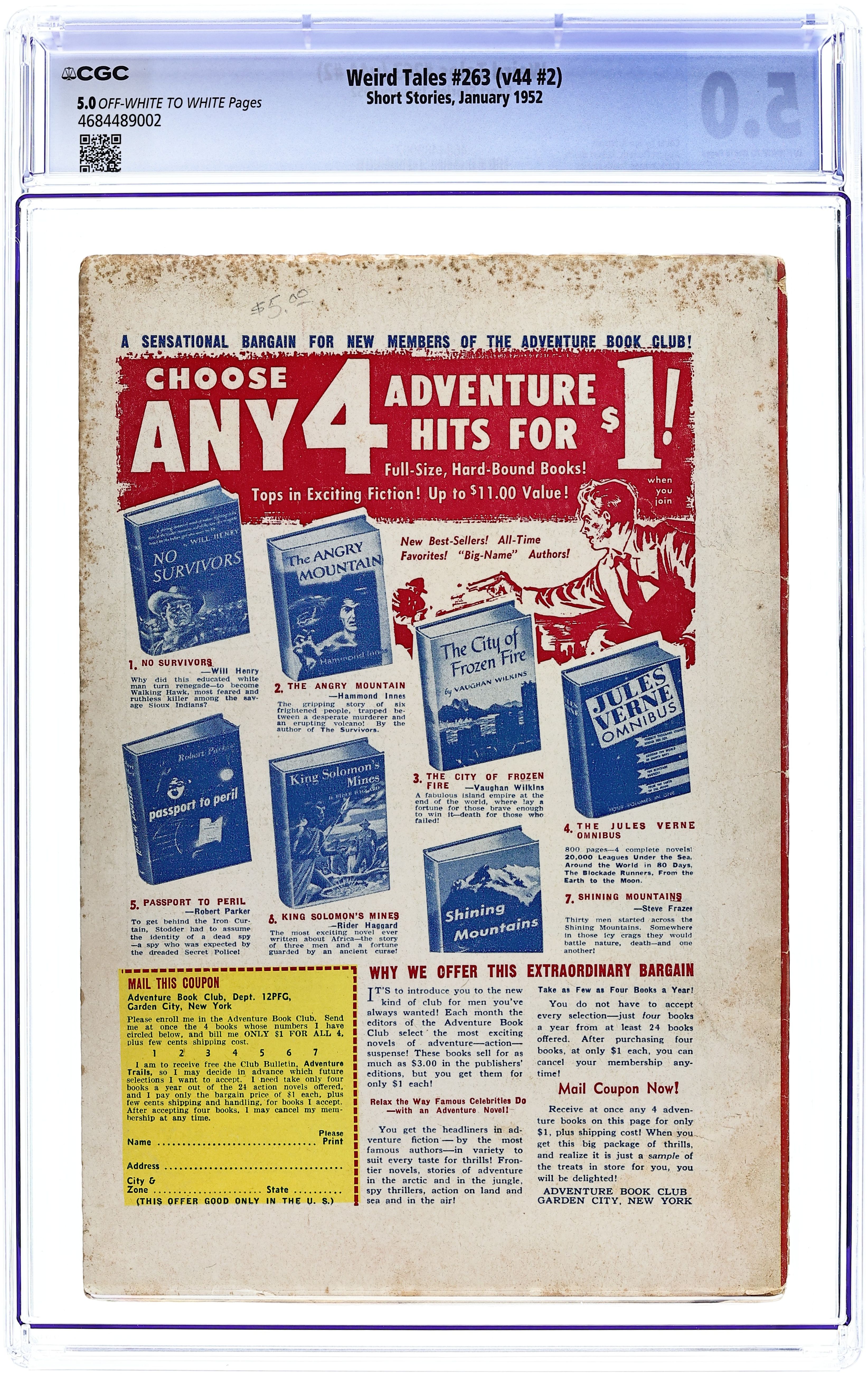 Published Jan 1952 by Weird Tales.$150.00- Paper: Off white to white