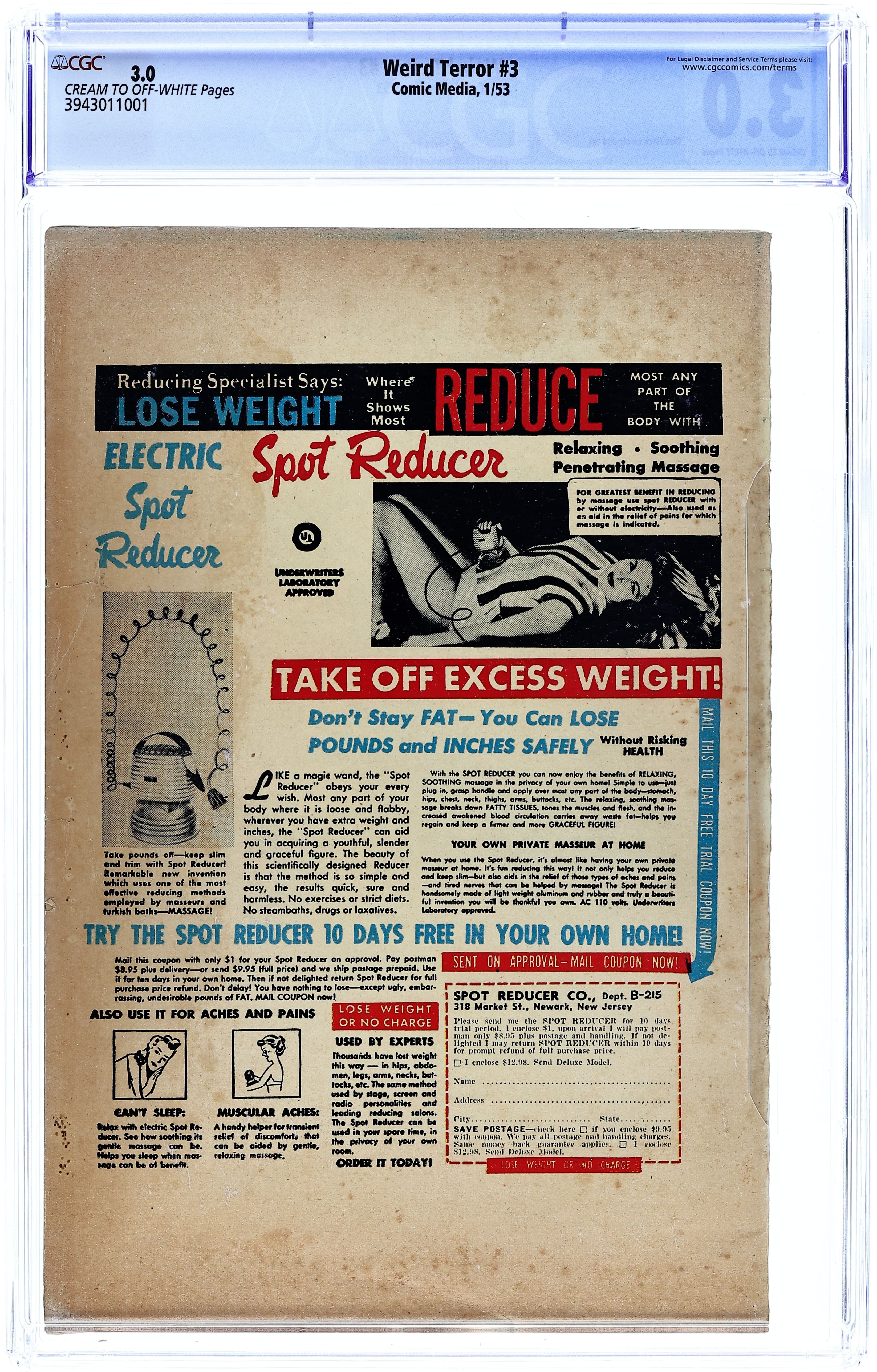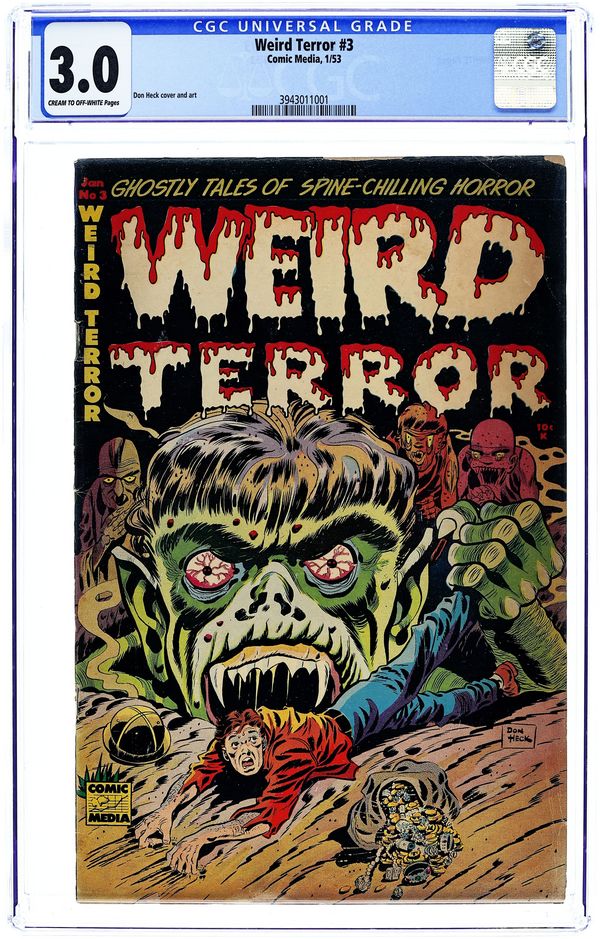 Don Heck cover. Includes the particularly gruesome "Den of Horror," in which an evil playboy transforms his lavish drawing room into a...well, you know. Plus text pieces on sin eating and dowsing. Edited by Allen Hardy. Stories by Pete Morisi, Don Perlin, Abe Simon, and Rudy Palais. Horror, suspense, and Weird Terror tales patterned after the classic EC comics. 36 pages, full color. Cover price $0.10.