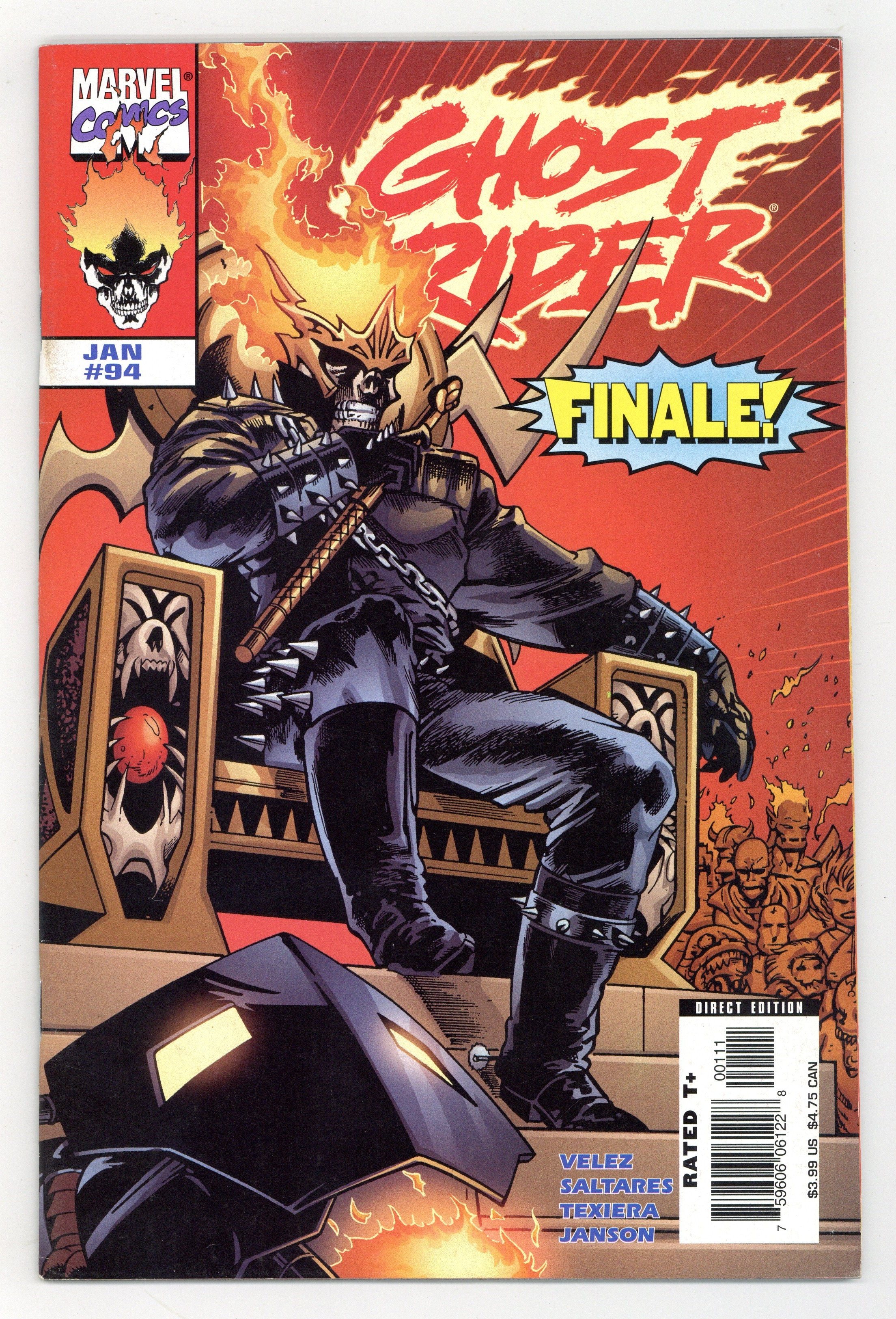 Last Temptation: Part 5 of 5 - Written by IVAN VELEZ Art by JAVIER SALTARES & MARK TEXEIRA Cover by JAVIER SALTARES The original creative team unites to complete an issue eight years in the making! In early 1998, GHOST RIDER #93 ended with a shocking cliffhanger: the death of Dan Ketch, the Ghost Rider's human host! But the book was canceled prematurely, prior to the release of the series finale in GHOST RIDER #94 - which had already been written and was almost entirely penciled. Now, the final fate of Dan Ketch is revealed at last! With Blackheart deposed, the Ghost Rider is now lord of the Nether Realm. What does he intend to do with his power? And will the other Dark Lords - like Belasco, Pluto and Hela - allow him to keep it? This special edition also includes GHOST RIDER #93 and other bonus material! 72 PGS./Rated T+ ...$3.99 Cover price $3.99.