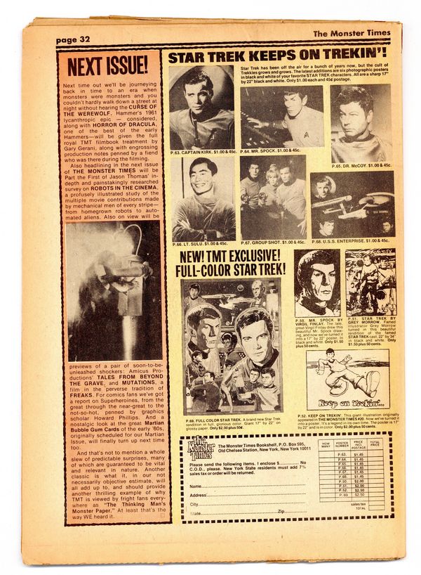 Published Jul 1974 by Monster Times Publishing.$14.00- Spine split 25%.