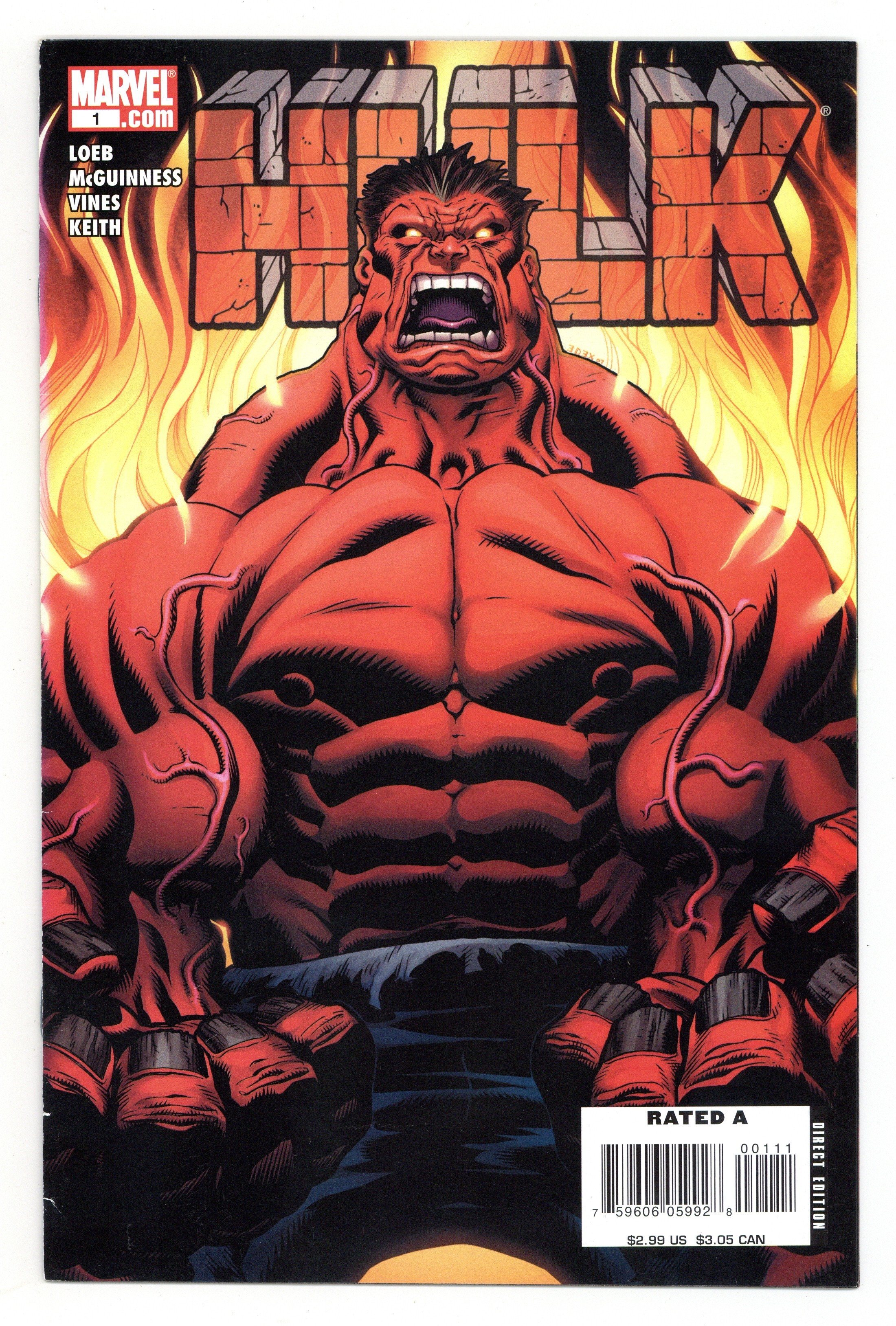 Direct Edition with $2.99 cover price. Written by JEPH LOEB Pencils & Cover by ED MCGUINNESS. Superstars JEPH LOEB and ED MCGUINNESS will change the way you see THE HULK! In this startling origin epic, the breathtaking events that ended World War Hulk rocket into this brand-new Hulk title. When one of The Hulk's oldest cast members is murdered, everyone turns to the team of IRON MAN, SHE-HULK and LEONARD SAMSON to solve the grizzly case. All the evidence points to the Hulk as the killer-but {CLASSIFIED}! Join us for a brand--new story and a brand-new team who loves the Hulk as much as you do! Cover price $2.99.