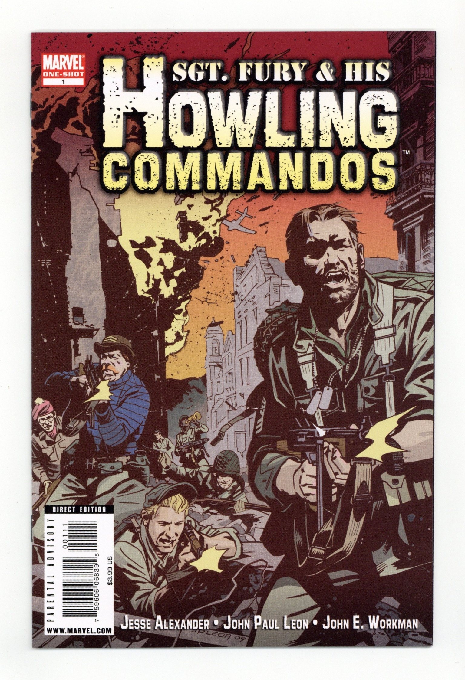 $16.25Written by JESSE ALEXANDER. Art and Cover by JOHN PAUL LEON. 'SHOTGUN OPERA'-Nothing less than the fate of the free world is at stake as Sgt. Nick Fury leads the Howling Commandos on their most dangerous mission ever! SHOTGUN OPERA sets the stage for the harrowing events of Jeph Loeb and Tim Sale's best-selling CAPTAIN AMERICA: WHITE. After parachuting deep into enemy-held Yugoslavia, Fury, Dum Dum, Izzy, Reb, Gabe, and Pinky Pinkerton need every bullet and grenade in the Allied armory as they are chased by Tiger tanks, strafed by screaming Stukas, betrayed by beautiful babes, and forced into gladiatorial combat against Baron Strucker's diabolical war machine: PANZER MAX! Brought to you by the team of Jesse Alexander (HEROES, LOST, ALIAS) and John Paul Leon (EARTH X), HOWLING COMMANDOES is a must-have for all Fury Fans, Cap Completists, and anyone who likes war comics that take no prisoners, show no mercy, and cry havoc! WA-HOO! 40 pages, MATURE READERS. Cover price $3.99.