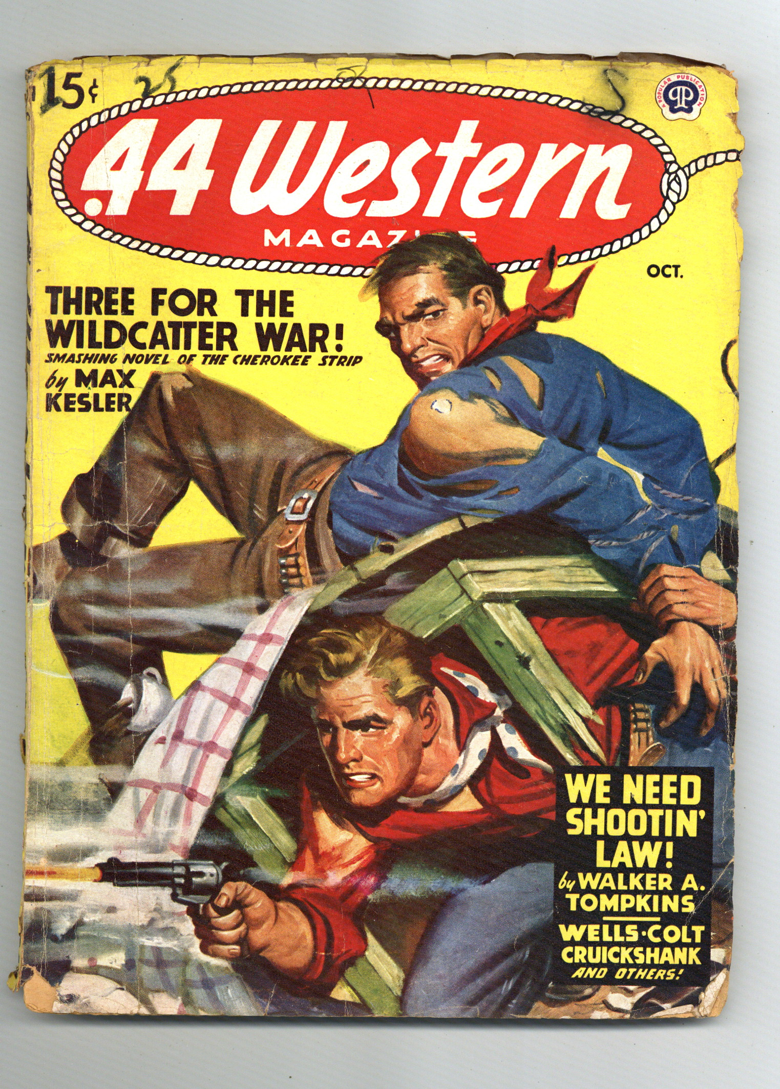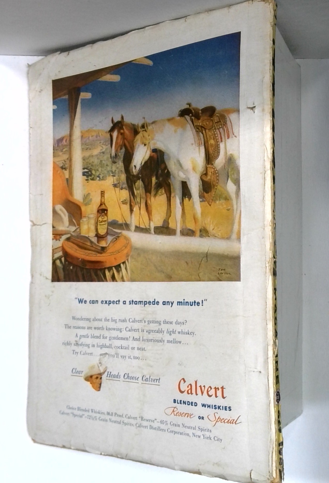 Volume 18, Issue 4 - October, 1947. Pulp magazine. "Three for the Wildcatter War" by Max Kesler, "King of the River Pack" by Harold Cruickshank, "Trail Blazers of the Frontier" by Cedric Windas, "Mountain Men Make Tough Killing" by Harrison Colt, "Chisholm Trail Gun-Cure" by Will Brown, "Piggin' Strings" by Del Rayburn, "That Texas Deadline-Buster" by Lee Wells, and "We Need Shootin' Law" by Walker Tompkins. Nice (though uncredited) illustrations. 7-in. x 9.25-in.; black and white; 98 pages. Cover price $0.15.
