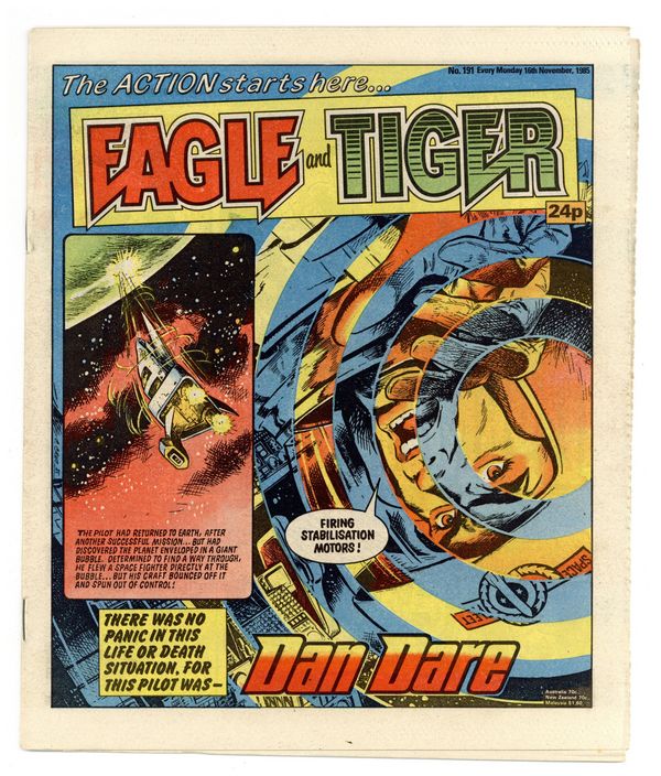 Nov. 16, 1985. "Eagle and Tiger" on cover. Dan Dare, plus other features. Published in the United Kingdom, 8-1/2-in. x 11-1/2-in, 32-pages including cover, all newsprint stock. Mix of color and black/white interior.