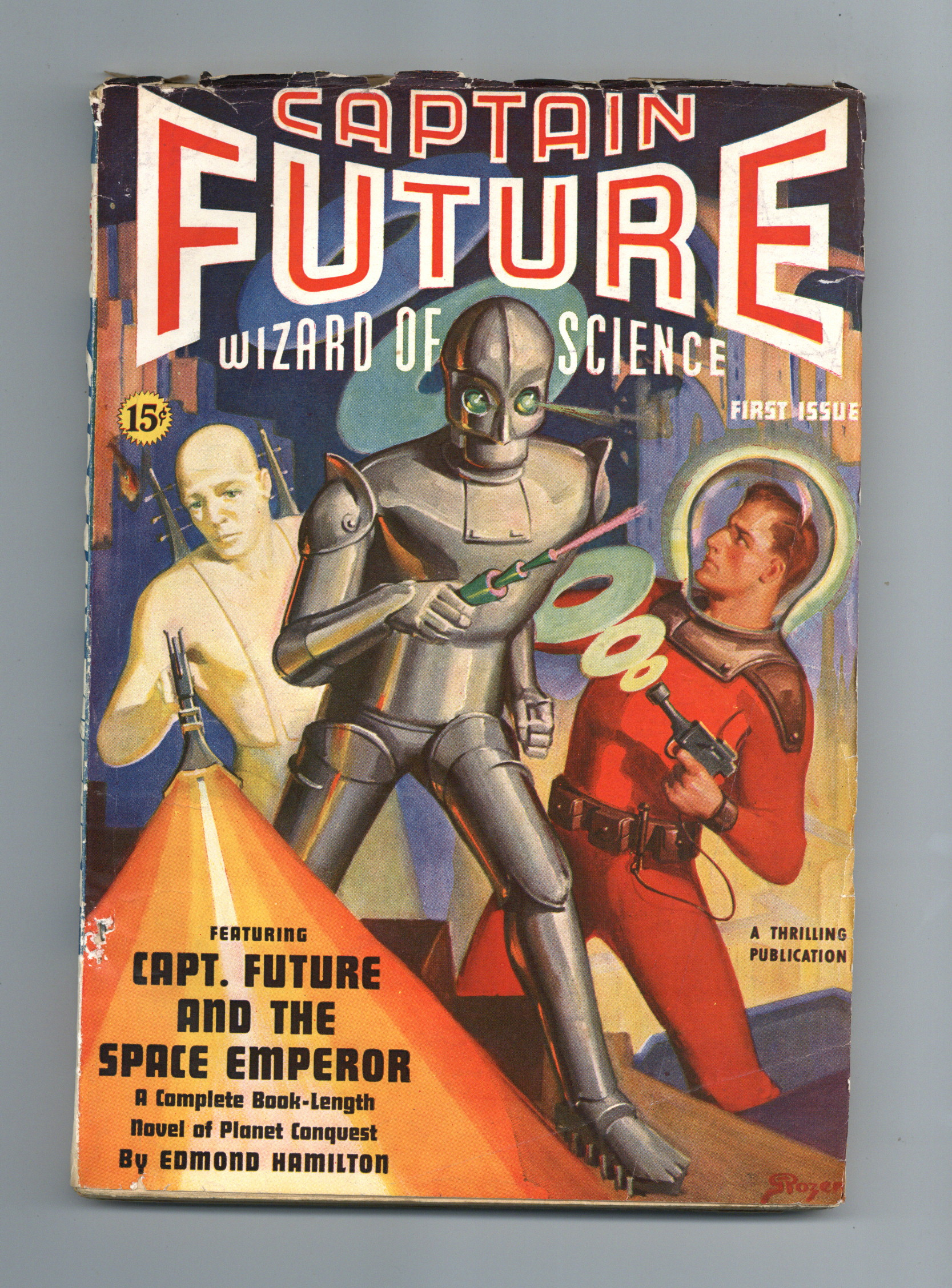 Winter, 1940. Cover by George J. Rozen. Stories by Edmond Hamilton ("Captain Future and the Space Emperor"), Eric Frank Russell, Oliver E. Saari, and David H. Keller. Illustrations by H. G. Wesso. 6.75-in. x 9.75-in.; black and white; 130 newsprint pages. Cover price $0.15.